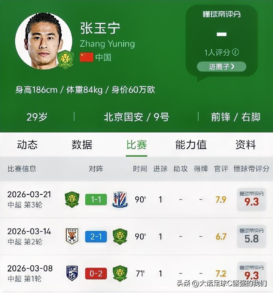 一不小心,领跑中超射手榜! 王钰栋,3场比赛打入3球+1助攻 张玉宁,3场比赛打入3球,每场都进球 谢文能,3场比赛打入2球 武磊,3场比赛打入2球,场均替补20分钟 不得不说,新赛季中超,国内球员能进球的,还是要看这四位球员。刚好老中青三代都有!