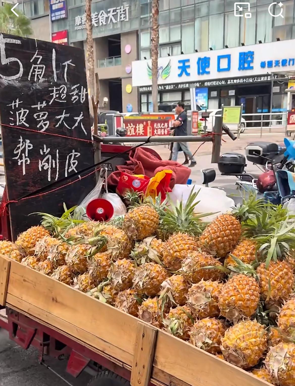 浙江女生惊呼广西街头菠萝 5 毛钱一个,还包削皮,广西的水果真有这么便宜吗?昨天去菜市场买的菠萝,7 块钱一个,包削皮。如果是凤梨 14 块钱一个,这是打特价的。今年到目前为止,还没有发现低于 5 块钱的菠萝。这个 5 毛钱,说实话商家 100% 是亏本的,种植菠萝的农户更是血亏。水果不是越便宜越好,因为种植的农户辛苦一季挣不到钱,不可能会想办法提高品质,商家卖这么低廉也挣不到钱,也不可能提供好的服务。