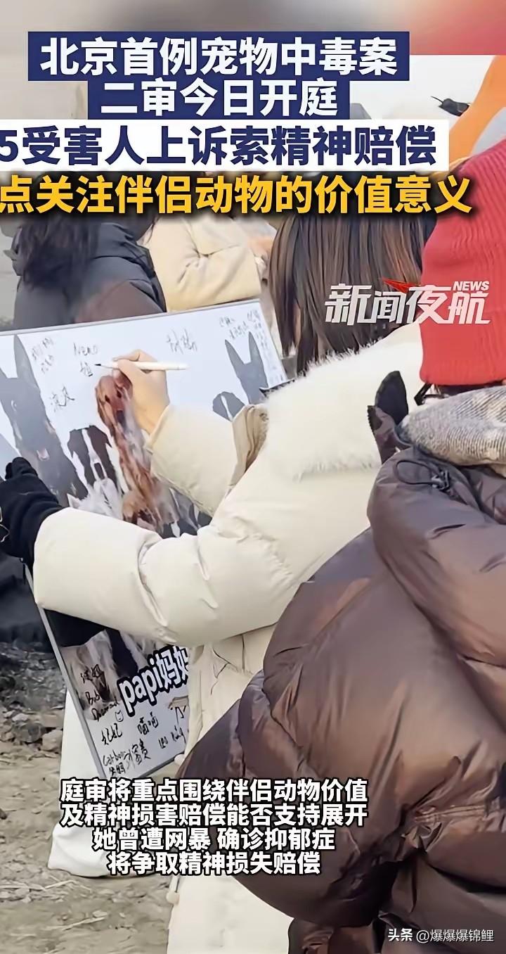 北京朝阳那个毒狗案二审了,狗主人李女士的操作真是让人开眼。 她开口就要20万的“精神损害赔偿”。 理由是13年的爱犬没了,自己直接重度抑郁,天天吃药。 我觉得养狗有感情这都能理解。 但一边喊着痛失爱犬要维权,一边居然趁着热度开启了直播带货? 这就有点魔幻了,到底是真伤心还是嗅到了商机? 咱们回头看看这事起因,真挺让人唏嘘。 当时小区里有人长期遛狗不拴绳、到处乱尿惹众怒。 那65岁患癌的大爷不堪其扰才去投毒,搞死了9条。 现在大爷一审判了4年,自己认栽根本没上诉。 反倒是这5位狗主人,继续上诉非要巨额精神赔偿。 目前法律上宠物只是“财物”,这20万能不能要到还真不好说。