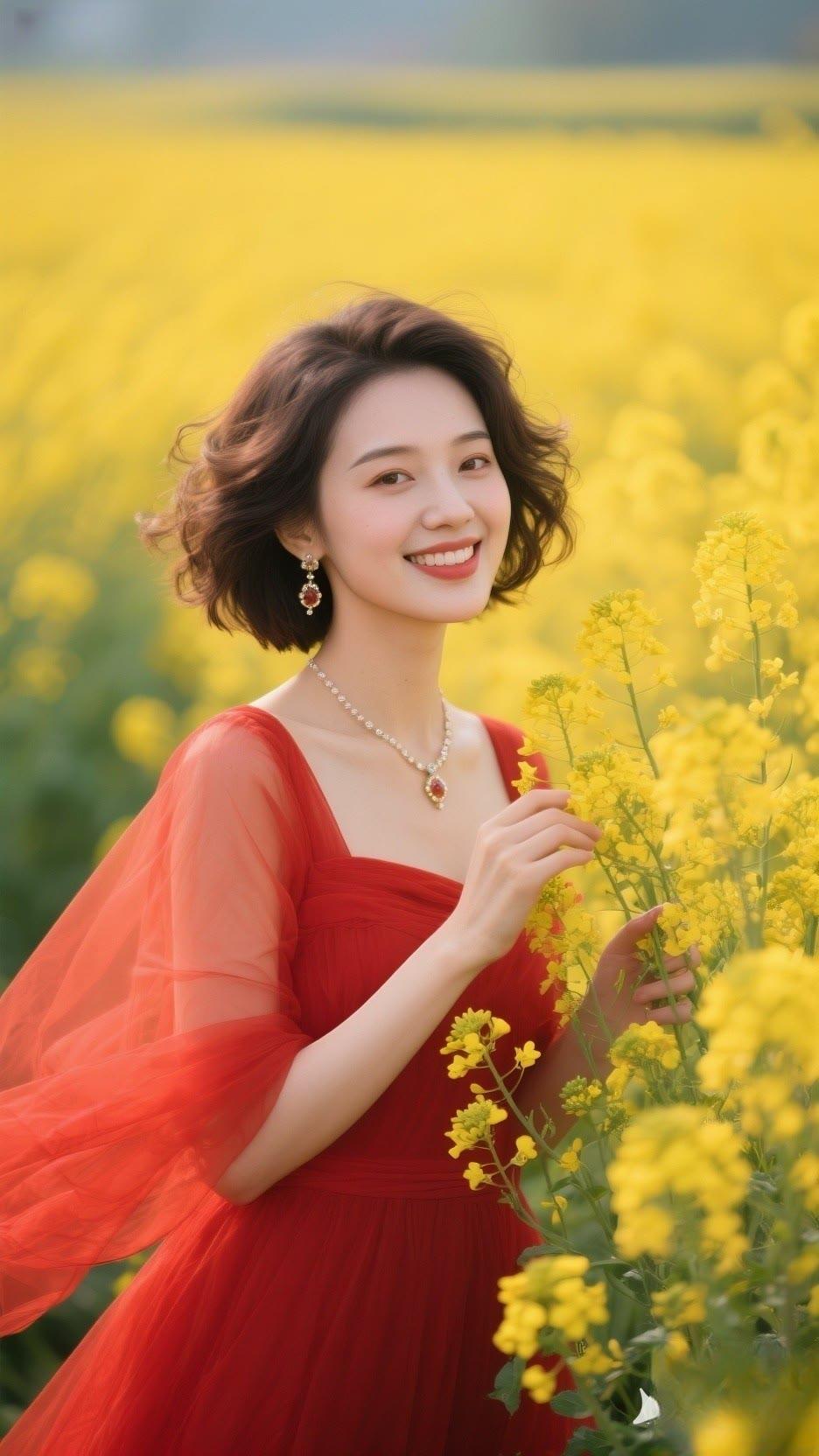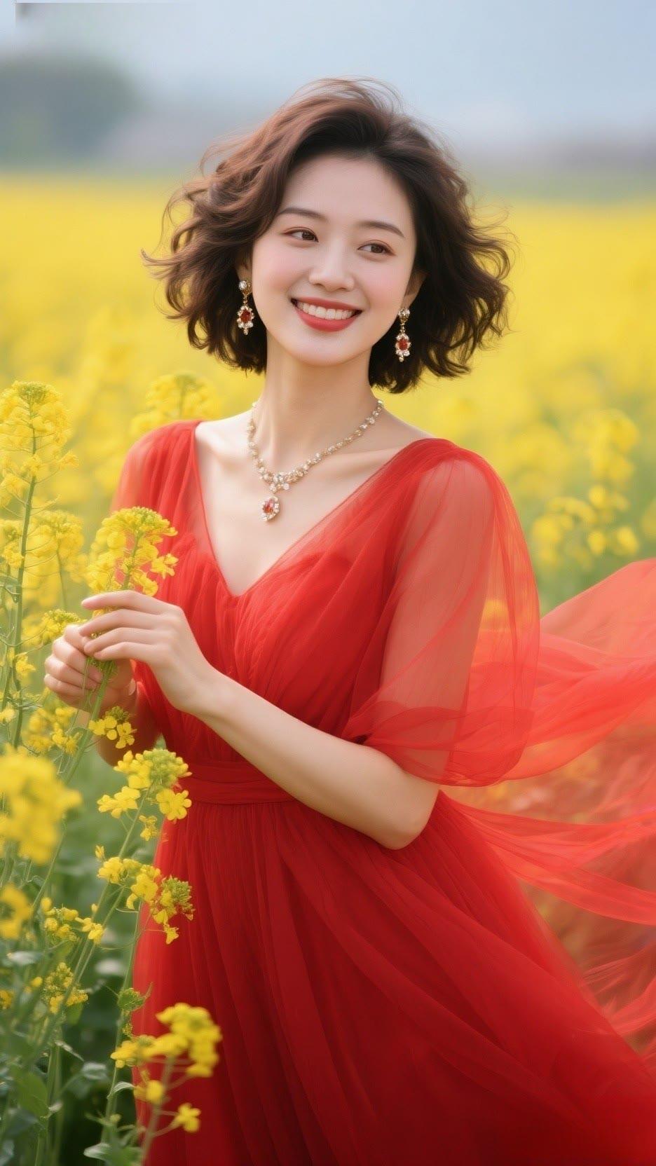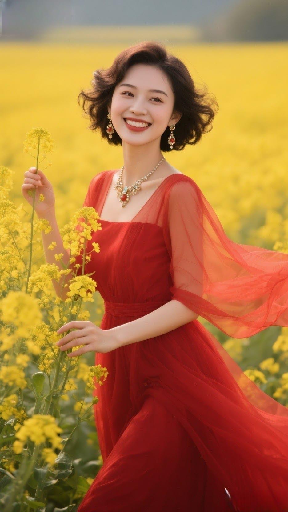 绝色成熟女子着华丽繁复锦绣旗袍,乌黑高挽发髻,肌肤无瑕,身姿婀娜比例均衡,圣洁高