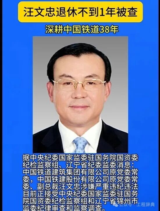 4.汪文忠,中国铁建原副总裁。