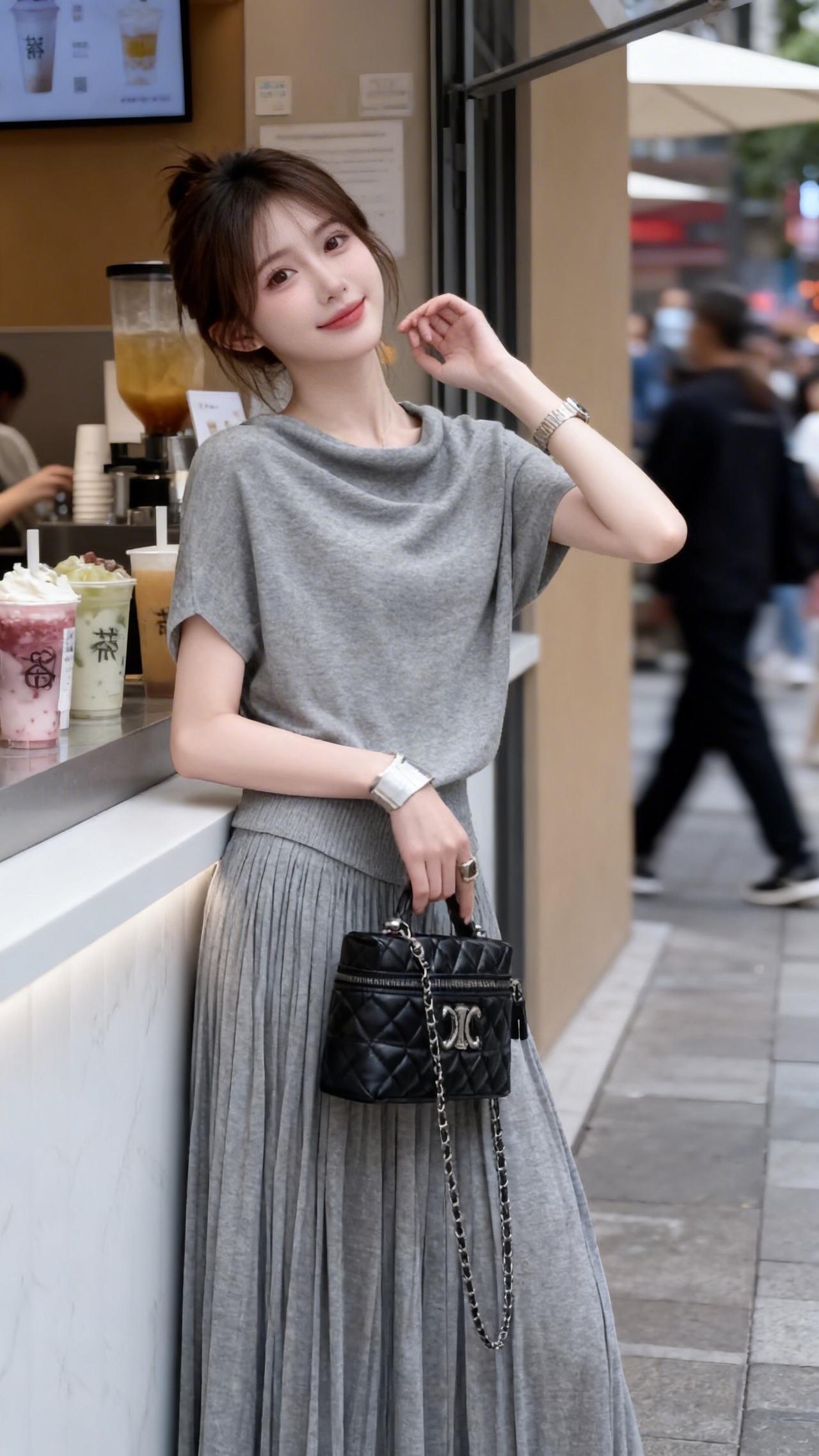气质优雅,灰色连衣裙穿搭,轻松展现迷人魅力!🌟✨