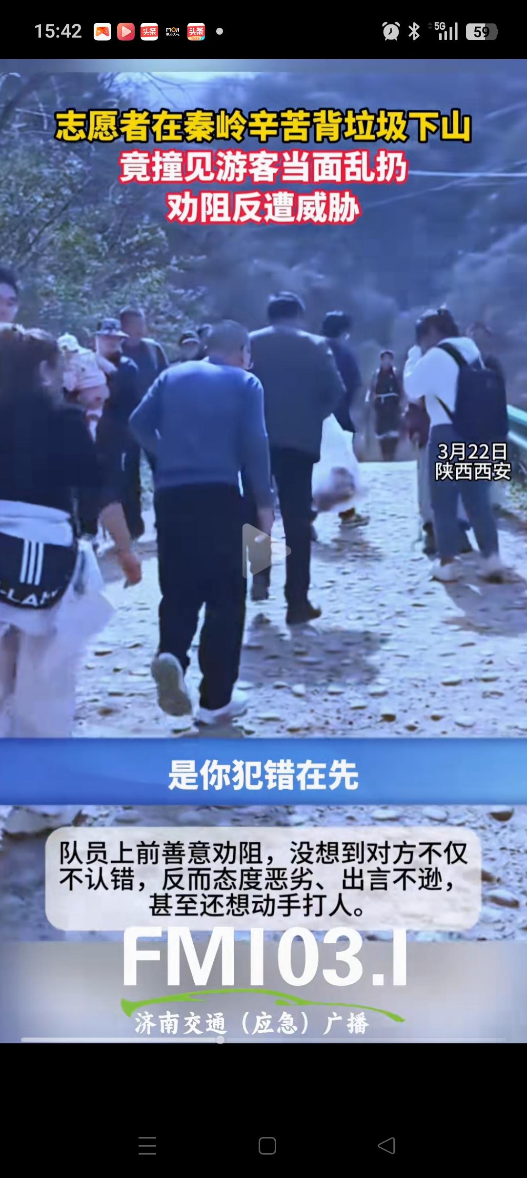 终于明白, 为什么秦岭乱丢瓶子的两人会这么嚣张了! 不是因为他们的工作有多好。因为他们一个是超市工作,一个是销售,都是很普通的工作。 而是我注意到当时和他们同行的还有几个好朋友。 那几个好朋友全程拦着他们,一直在劝和,所以他们说话才会这么冲,甚至用手指着志愿者。 因为他们知道根本打不起来,也不想打,无非就是要面子。 现在两人已经道歉了,戴眼镜的男子说的还是挺诚恳的,应该是知道错了。。 希望他们吸取教训,以后不管什么场合,都注意自己的言行举止。。。