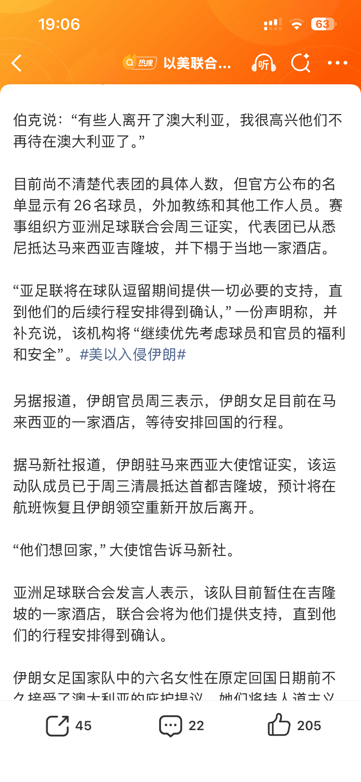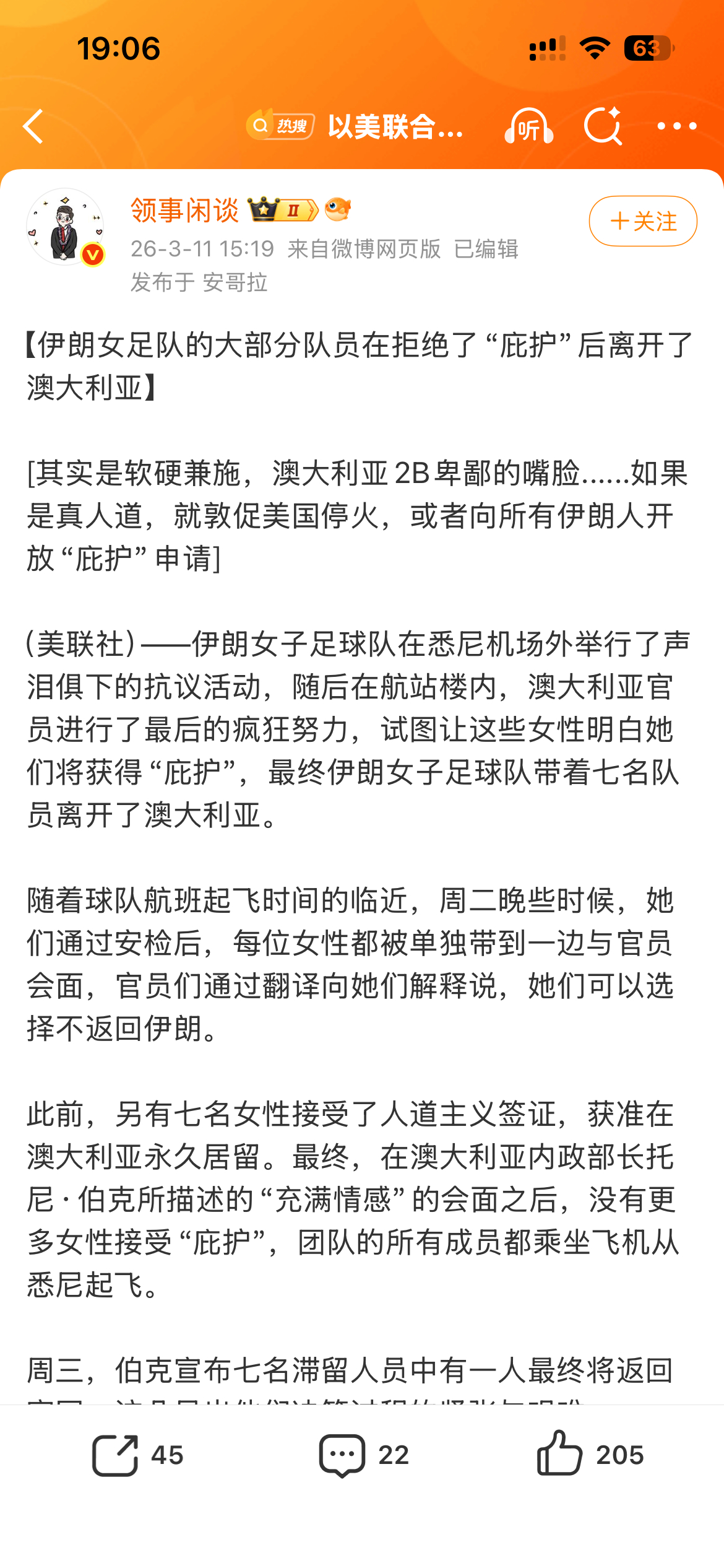 美化以色列美国入侵伊朗,对澳大利亚庇护伊朗女足事件断章取义报道,以夹杂自己的意识形态,断章取义,歪曲事实,又狡辩自己是体育媒体人,不参与zz事件,你真是太恶心了你倒是把事情讲明白啊,公知付政浩你好