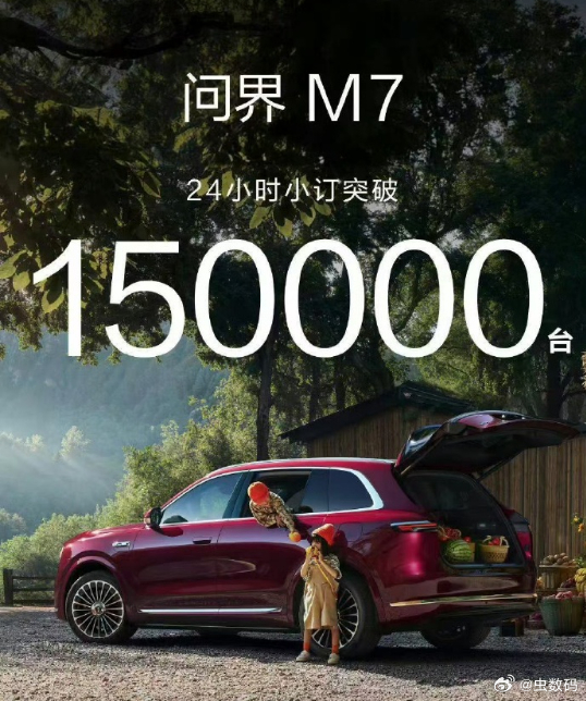 牛逼啊!问界M6 24 小时预定 6 万台问界M7 24 小时预定 15 万台尚