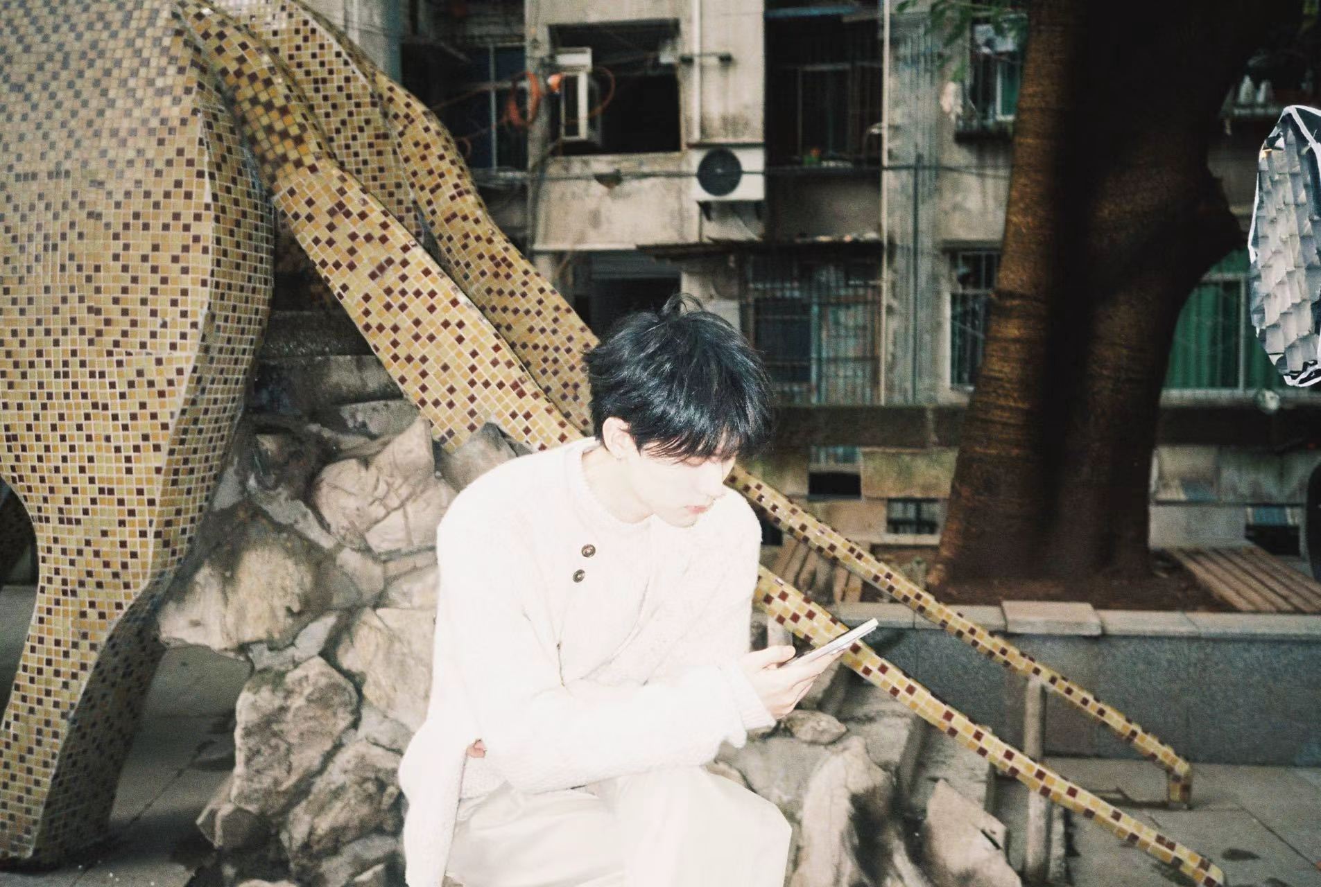 周翊然长颈鹿滑梯随拍 周翊然长颈鹿滑梯随拍来啦 米白色针织毛衣造型休闲温暖,和