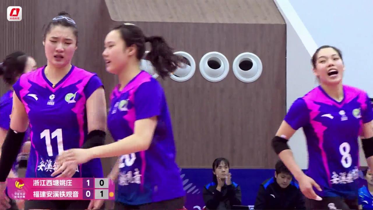 【女排超级联赛】7、8名决赛(1):浙江——福建 实时战况: 3月24日晚19:00时,女排超级联赛7、8名决赛浙江——福建的第一场比赛在浙江队主场准时开打。第一局开始,0:1,浙江得分。1平,2平,庄宇珊。3平,4:3,刘雨。5:3,浙江领先。5:4,叶佳婧。6:4,6:5,叶佳婧。7:5,季雨潇。8:5,浙江领先。10:6,福建暂停。10:7,12:7,浙江领先。13:8,倪梦杰。14:8,刘雨。14:9,庄宇珊。15:10,浙江领先。16:11,16:12,叶佳婧吊球得分。17:12,17:13,浙江发球出界。庄宇珊扣球得分,17:14。浙江暂停。21:19,21:20,22:20,23:20,25:23,浙江胜第一局,大比分1:0,浙江领先! 第二局比赛正在进行中……