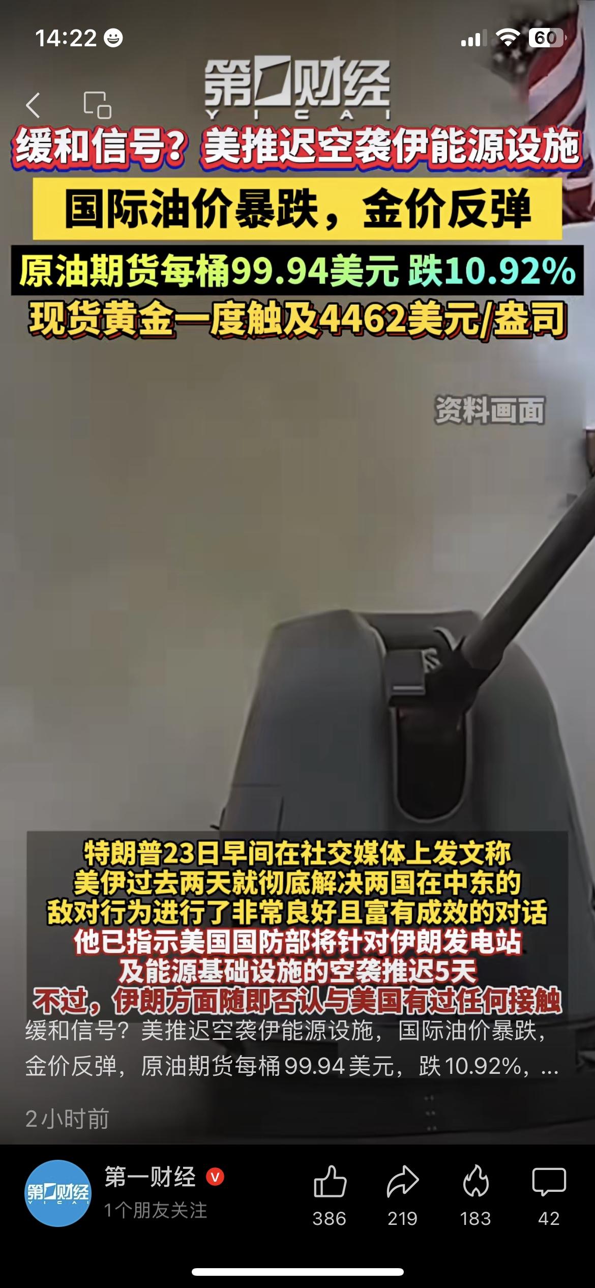油价暴跌10%黄金又反弹!美伊这出戏晃晕全球钱包 今早刷到原油期货暴跌10.92%、黄金反弹的新闻,还好昨天没跟风抄底,不然得拍大腿! 特朗普说伊朗主动求和,伊朗直接否认;美国得州炼油厂爆炸,美军还要增兵波斯湾。 前一天还因霍尔木兹海峡预期暴涨,现在油价跳水黄金反弹,咱普通人油费、理财都跟着晃。 别慌:错峰加油薅优惠,别碰高波动能源股,多关注国内油价调控。 你昨天跟风抄底了吗?评论区聊聊。 国际油价 黄金走势 美伊冲突 民生理财 市场有风险,投资需谨慎。