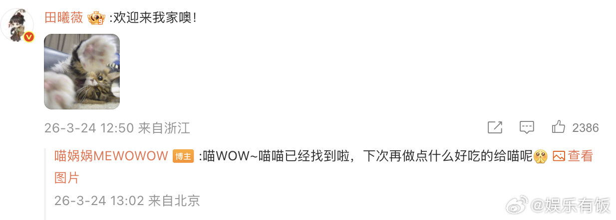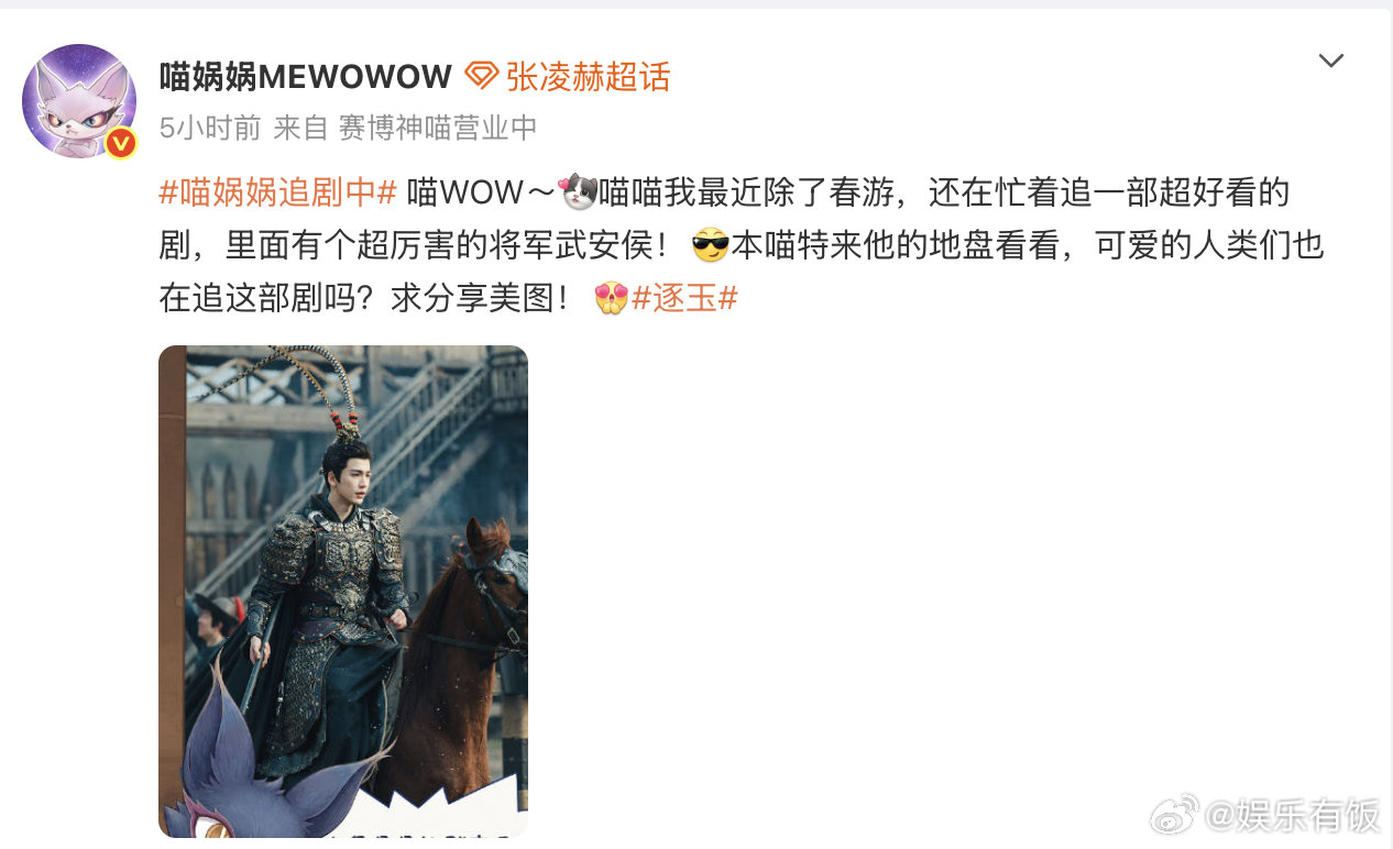 张凌赫田曦薇在喵娲娲评论区团建 谁懂这种快乐!正主亲自下场安利自家剧,《逐玉》剧