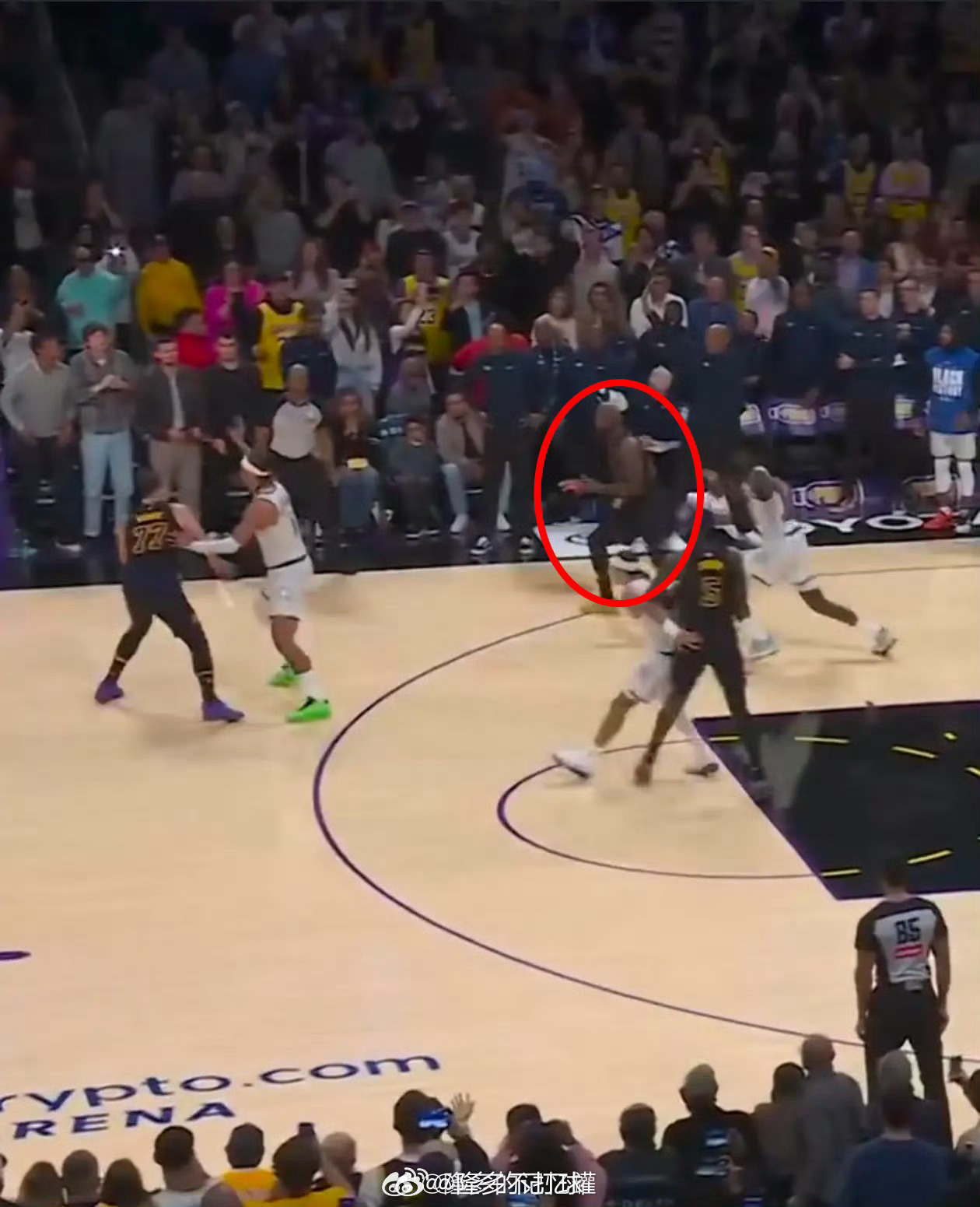 我勒也是学聪明了,自从上次打魔术被“甩锅”后,最后一攻都离得远远的,今天干脆直接往裁判身上站着