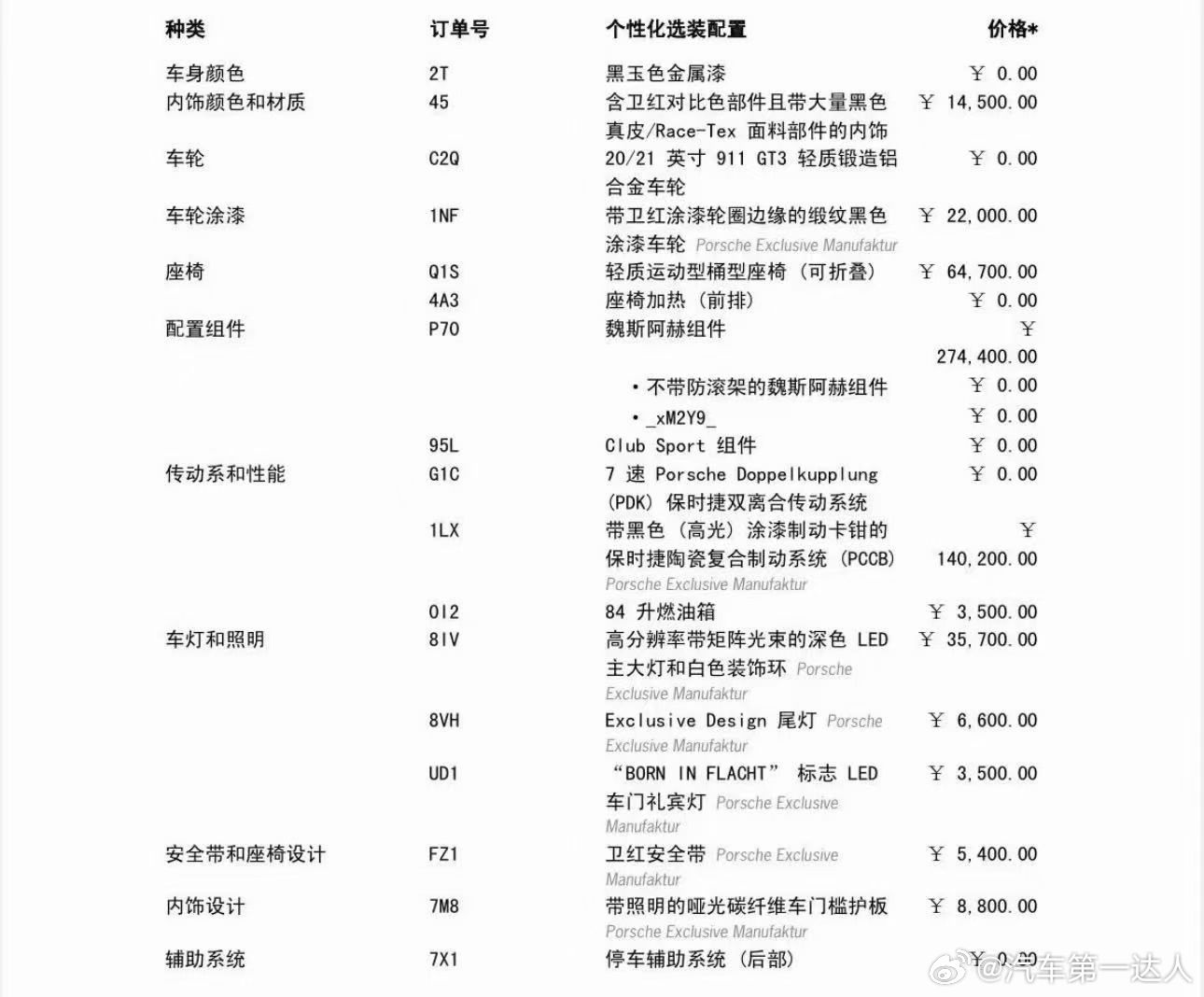 保时捷992.2 GT3 ,高定版配色,选配Weissach Package,带