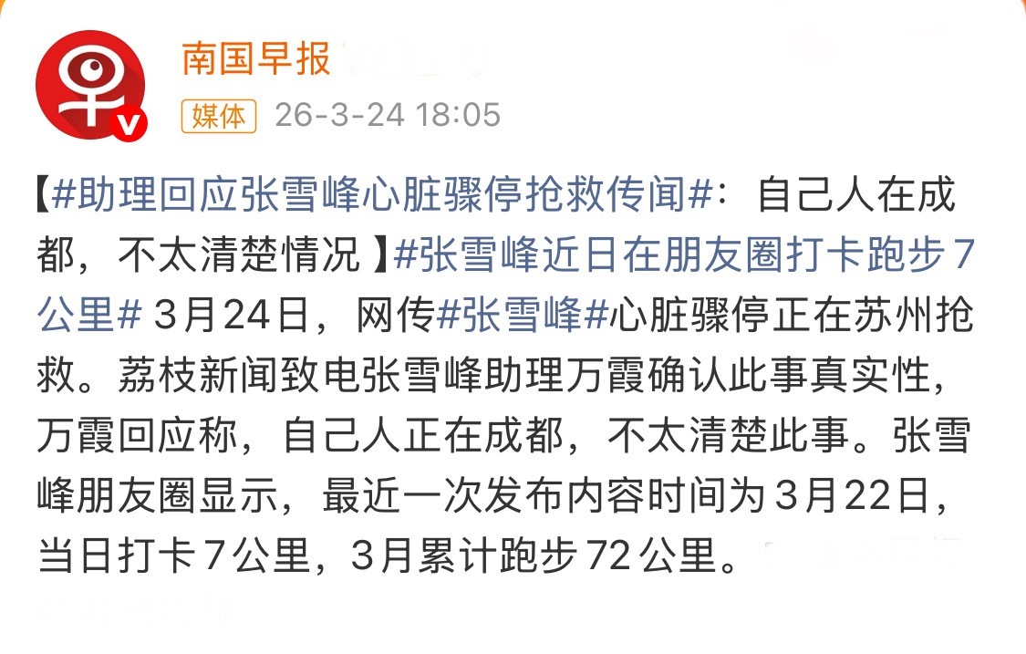 感觉张雪峰这事,会在跑步圈掀起激烈讨论。据张雪峰朋友圈显示,最近一次发布内容时间为3月22日,当日打卡7公里,3月累计跑步72公里。有没有长期健身的朋友评价一下,这对于41岁的人来说,属于什么水平?看新闻,最近几个月,已经有两个老总跑步出事的