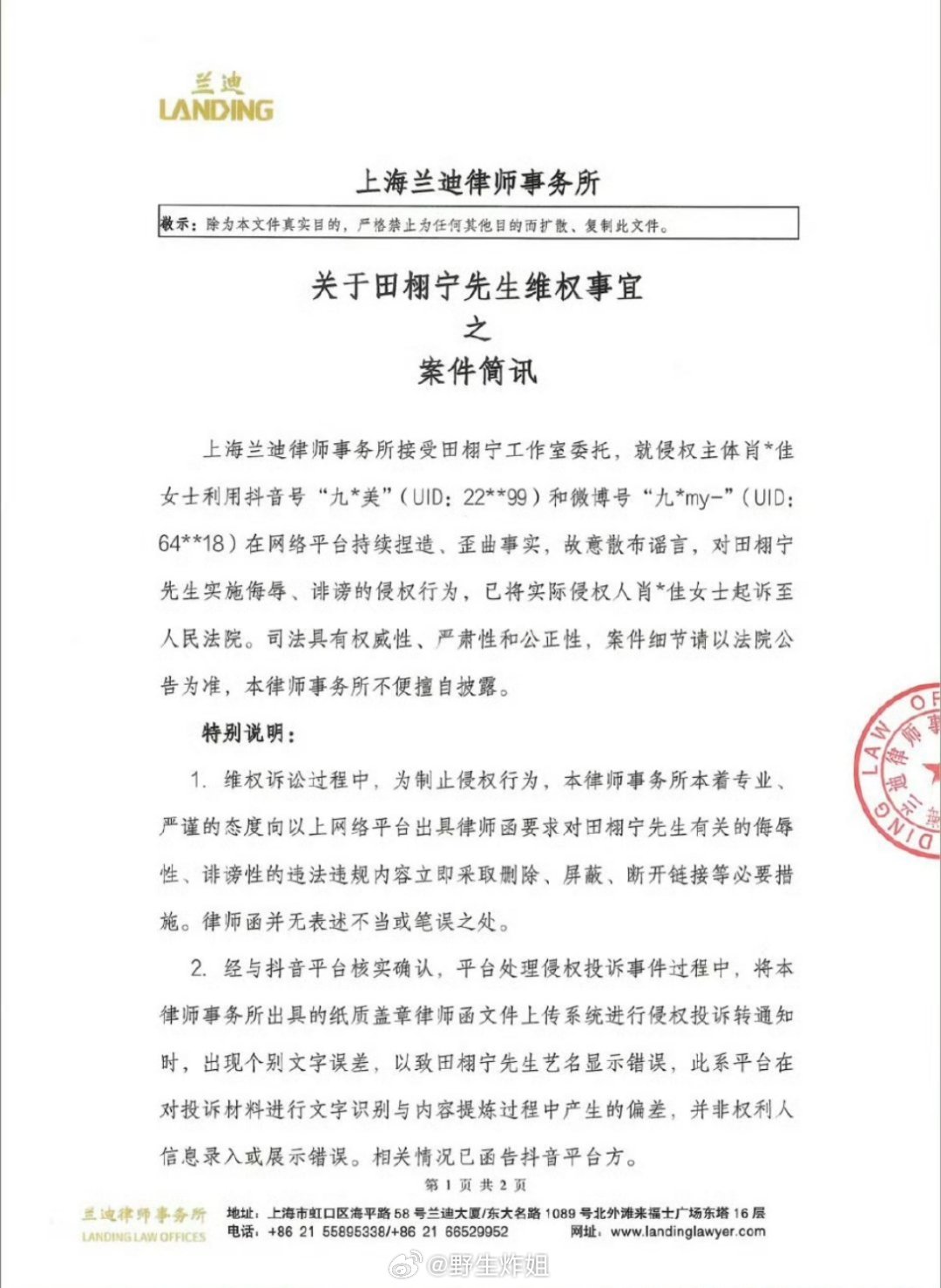 突然发现田栩宁的维权方式就是给律师函啊,可是九成美一点儿也不怕啊,真的不给个确切回应,九成美是不会放弃了