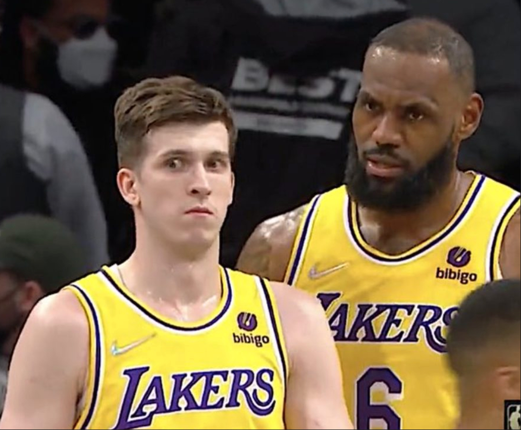 小里做客球场大脑聊的可高兴了老詹自己玩起世界名画的梗湖人国度里夫斯