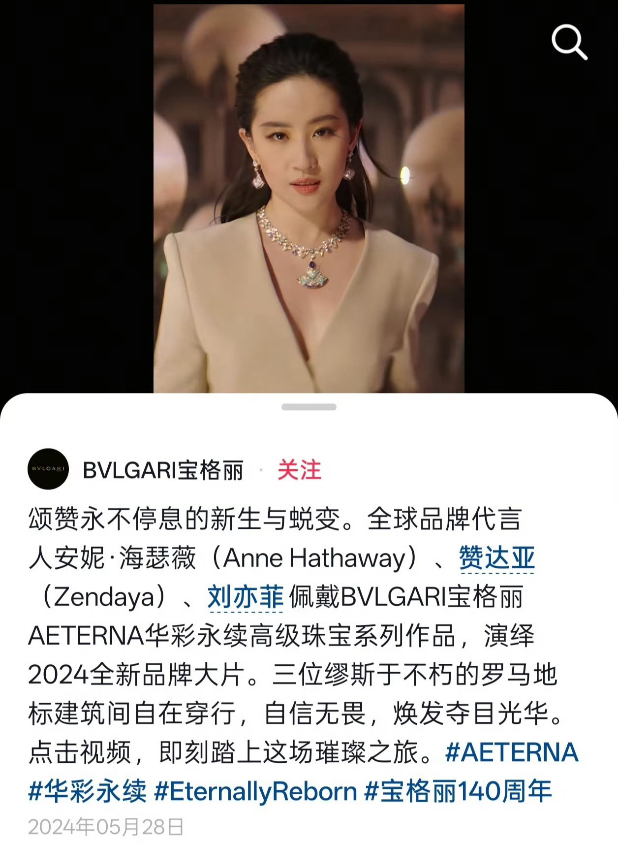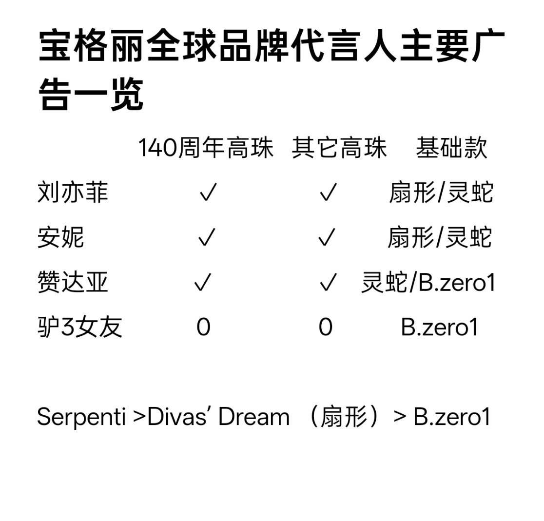 不要羡慕刘亦菲参加宝格丽全新高珠秀,只不过拍了140周年全新高珠全球广告,也有自己OG全球高珠广告,其他广告戴满了宝格丽,推封无数,既有WWD日报OG封面,又有VOGUEChina金九周年OG封面。看着刘亦菲拍广告拍杂志很过瘾是吧刘亦菲背后是中国,中国越好,刘亦菲越好