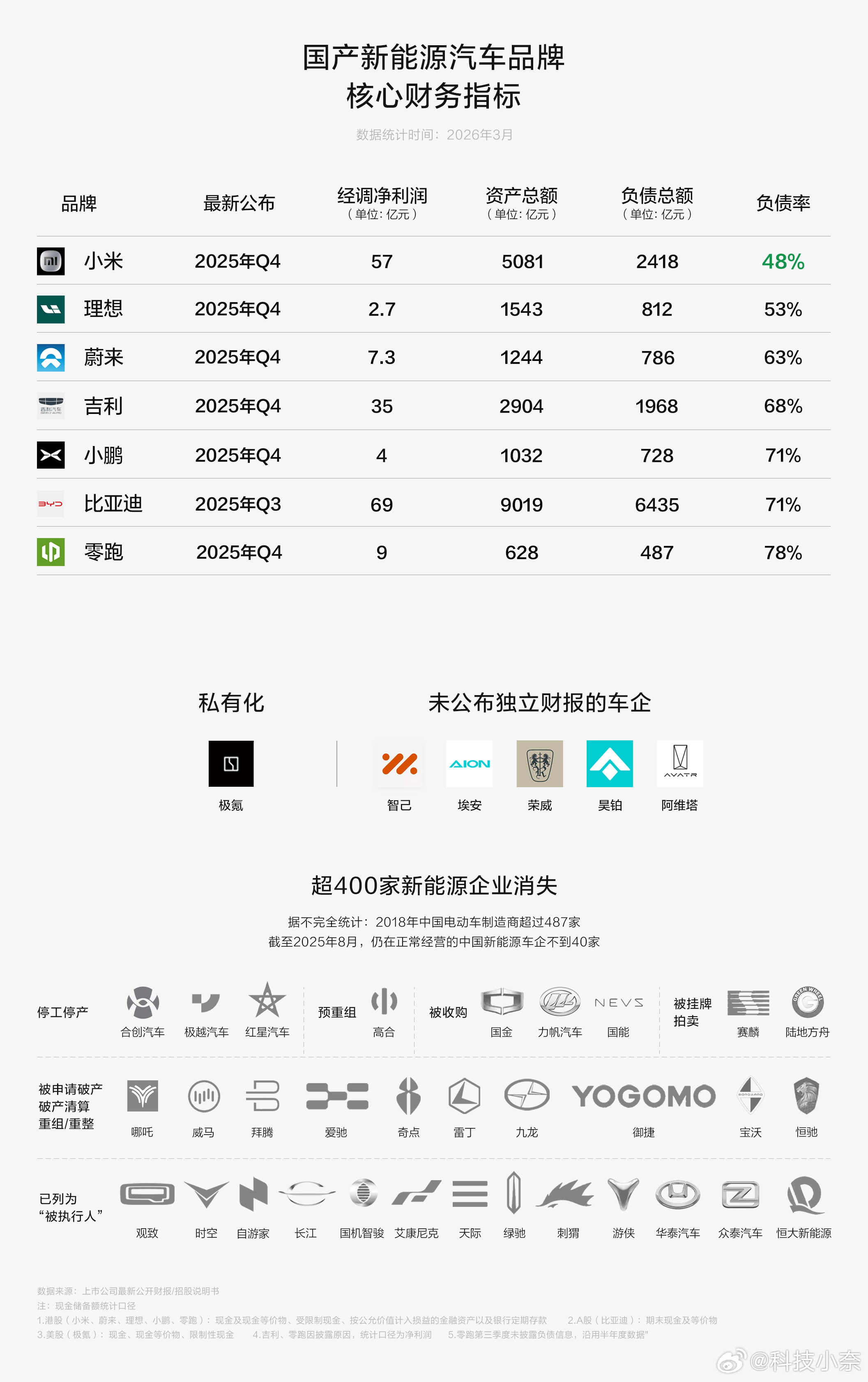小米2025年财报 小米2025年的财报成绩还挺亮眼的,在行业大环境不算轻松的情况下,交出了营收4573亿元、经调净利润392亿元的答卷,同比分别增长25%和43.8%,双双创下历史新高,这份成绩单确实让人眼前一亮。其中汽车业务的表现尤为突出,入局不到两年,全年收入就突破了1061亿元,还实现了盈利,2025年新车交付超41万台,第四季度营收占比更是超过三成,快赶上手机业务了,妥妥成了新的增长引擎。SU7和YU7的市场表现都不错,能在竞争激烈的新能源市场站稳脚跟,看得出来产品力很在线。手机业务的基本盘依旧很稳,连续5年全球出货量稳居前三,国内3000元以上高端机型的占比达到27.1%,高端化的步伐走得很扎实。IoT和互联网服务业务也同步增长,人车家全生态的布局慢慢跑通了,不再单一依赖手机业务,集团的抗风险能力也更强了。小米在研发上的投入也一直很舍得,2025年研发投入331亿元,五年累计超千亿,自研大模型跻身国内第一梯队,人形机器人、智能驾驶相关的技术也在稳步落地,未来三年还计划投入600亿深耕AI领域,长远布局看得很清晰。从性价比起家到如今多赛道协同发展,手机、汽车、AI、IoT全面开花,小米的这份成长和转变,在这份财报里体现得很明显。小米2025年净利润391.7亿