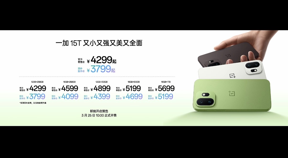 一加15T价格公布了,涨了比较多,参照上一代接近1000元涨幅4299元起,发布会上花了比比较多篇幅为涨价铺垫。今年大家估计换机欲望不会太强,不涨价难、涨价更难啊。