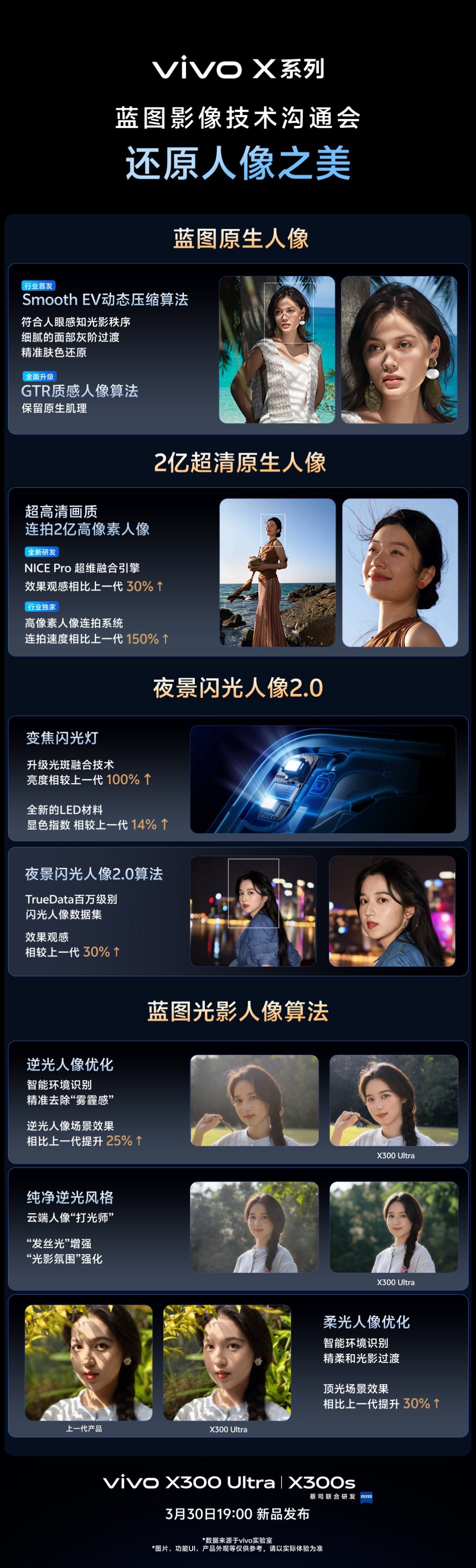 五张图看懂vivo影像沟通会,从硬件到算法全面升级,远近都能拍。长焦清晰超广角画质扎实,暗光画质也能保证干净明亮,人像自然,色彩舒服,兼具拍摄,一台手机搞定所有~