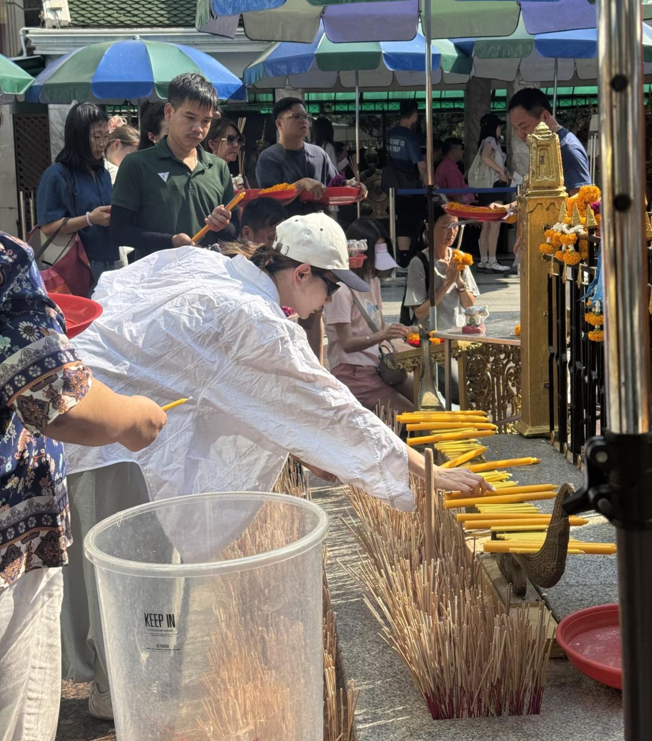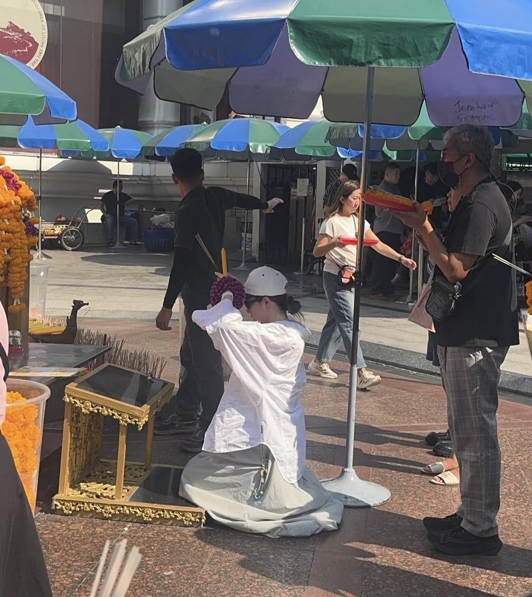 3月24日,戚薇和李承铉现身泰国跪拜四面佛,夫妻俩在中午大热天排队,跪着双手合十祈福,看起来好虔诚,他们完全不在意明星身份被路人认出来! 戚薇在下跪祈祷时,李承铉在一旁排着队,两人打扮低调,身边没有助理跟着,非常接地气! 据悉,娱乐圈好多明星都曾被拍到去泰国拜四面佛,越有钱的人越信这些。