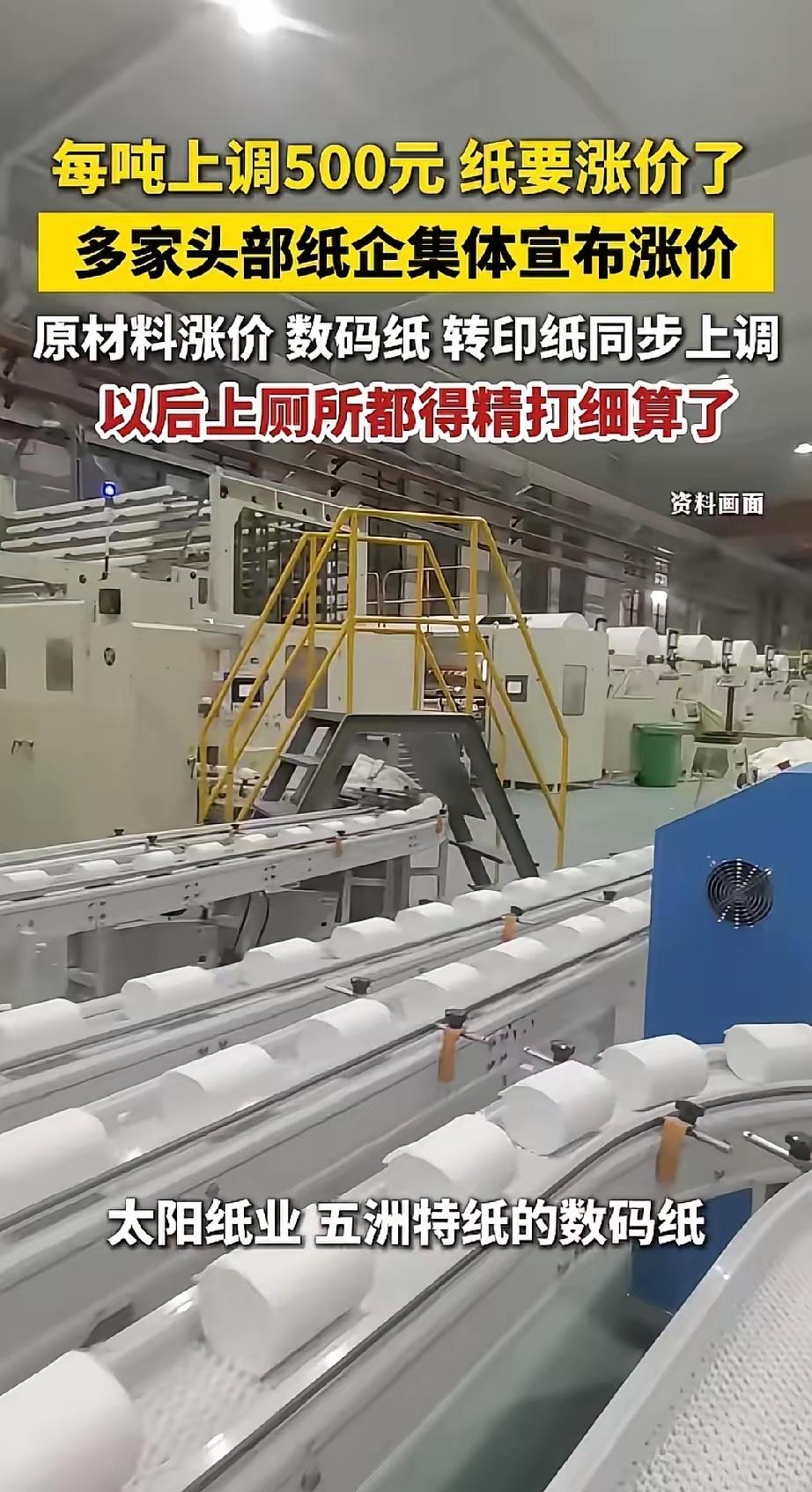 纸也涨价了!多家纸企宣布每吨上调500元 是因为最近油涨价了,运输成本增加了,然后加上各种乱七八糟的,肯定会长的羊毛出在羊身上。但是油涨了有机会调控降价,纸涨了就没有降价的余地了。