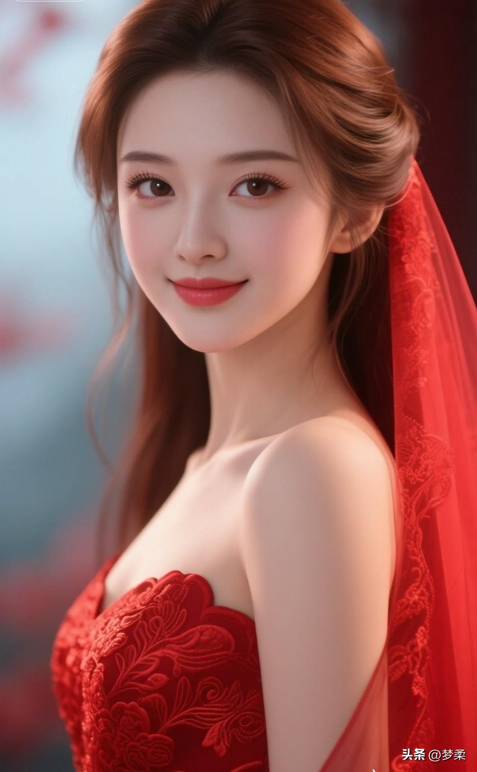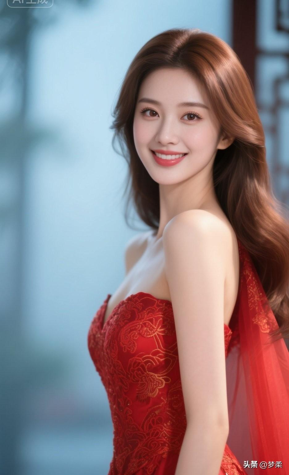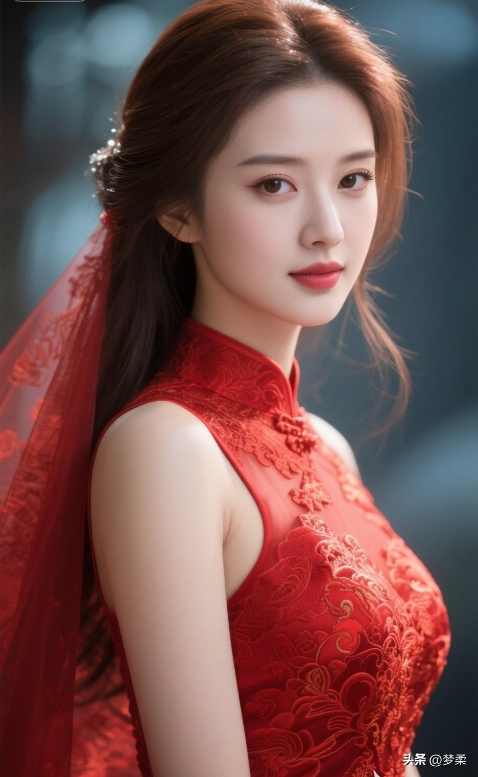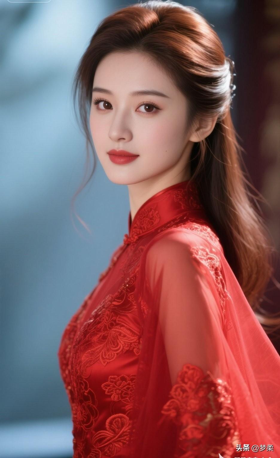 这位美女穿着红色礼服,好漂亮!