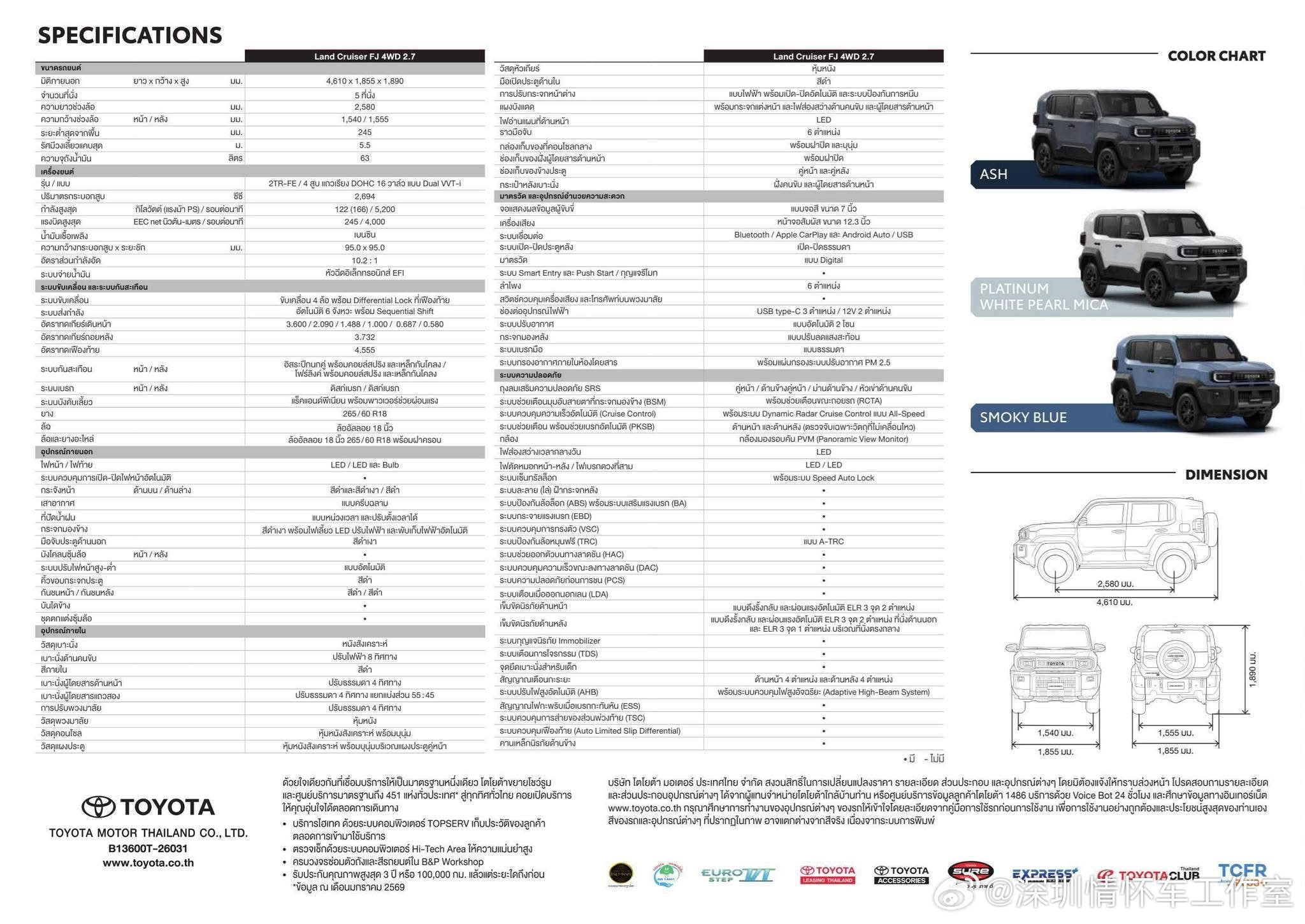 2026 兰德酷路泽FJ,FJ命名时隔9年回归,丰田首次将FJ独立为紧凑型硬派系列,填补入门复古越野空白。2026 FJ是全新独立系列,不是2006款的换代,而是FJ精神的现代化重启。2026年全球正式上市。定位为兰德酷路泽家族第四大系列(与70/250/300并列),紧凑型硬派越野,主打复古+实用+可玩性。 平台为IMV硬派非承载平台(海拉克斯/穿越者同平台),非2006款FJ的LC120平台。动力为2.7L自吸+分时四驱,更经济、更轻量化。设计上双前脸(圆灯致敬FJ40、方灯现代),保留圆灯、白顶、外挂备胎、TOYOTA中网等经典元素。