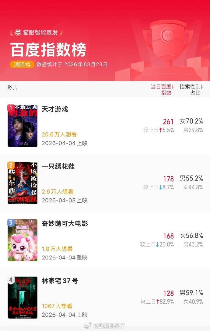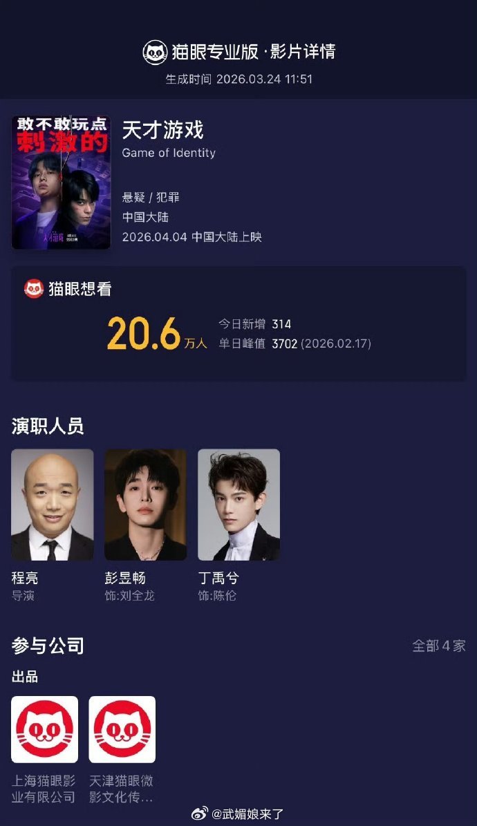 丁禹兮《天才游戏》明天发预告啦!官抖悄悄改简介了,想看已经冲到20w+,拿下清明档多榜第一!l