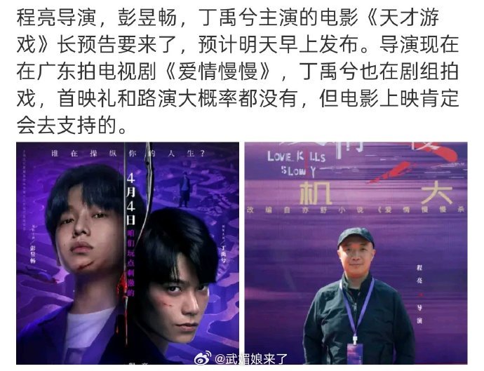 丁禹兮《天才游戏》明天发预告啦!官抖悄悄改简介了,想看已经冲到20w+,拿下清明