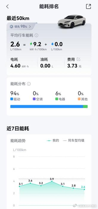 说到底还是比亚迪第五代 DM 技术太顶了,纯电续航够日常通勤,一周一充,每公里才 5 分钱,有家充桩的话一年能耗成本才几千块,比燃油车省大几万。就算跑长途亏电开,百公里油耗才 2.6L,油费成本低到离谱,满油满电还能跑两千多公里,根本不用频繁补能。
