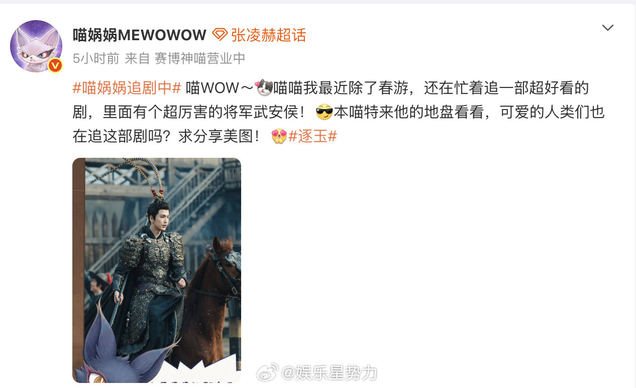 张凌赫田曦薇在喵娲娲评论区团建 谁懂啊家人们!《逐玉》两位主演直接空降到喵娲娲评