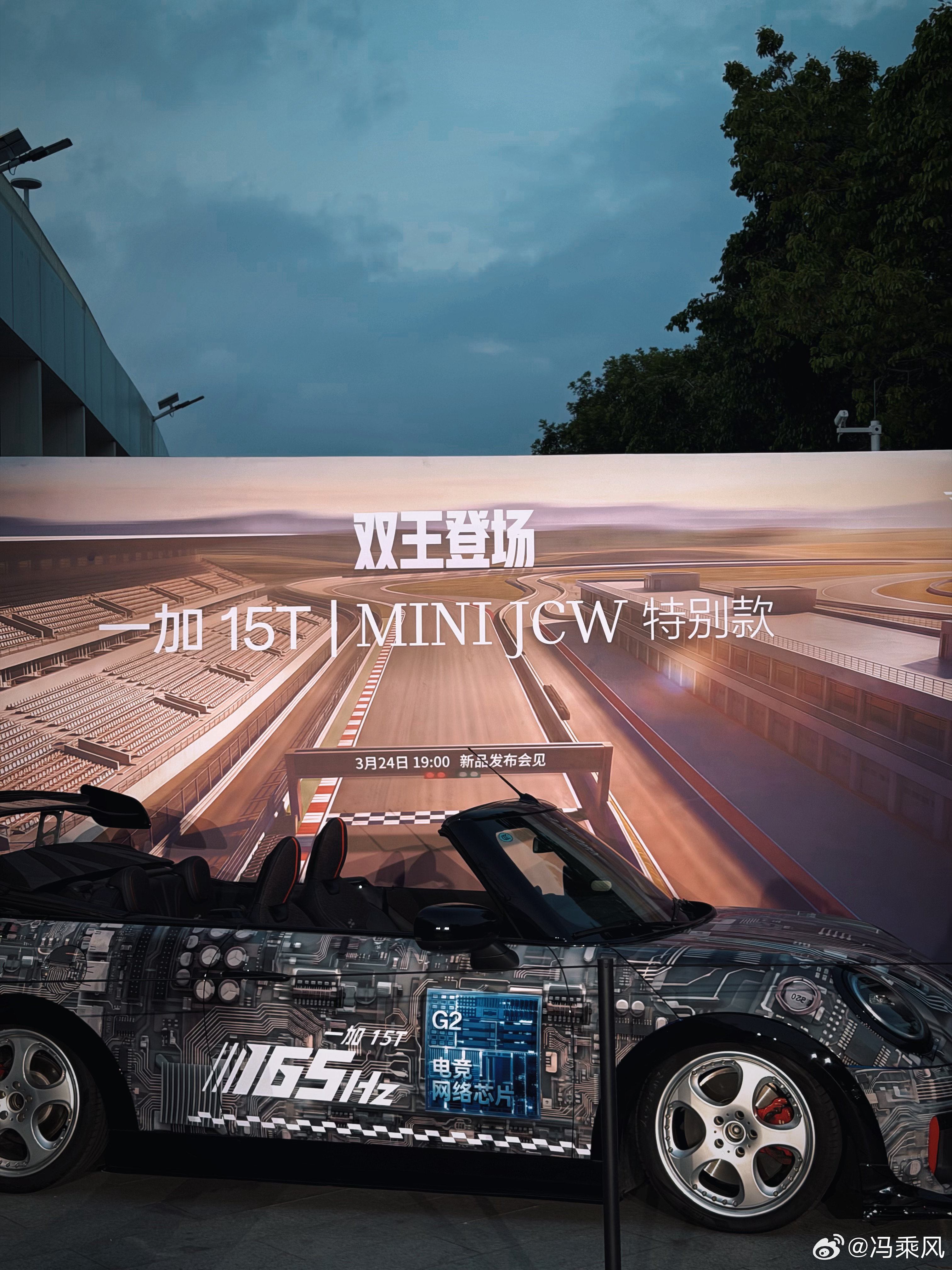 来看小屏旗舰一加15T新品发布 ,门口摆了一辆贼帅的MINI JCW,双王登场,