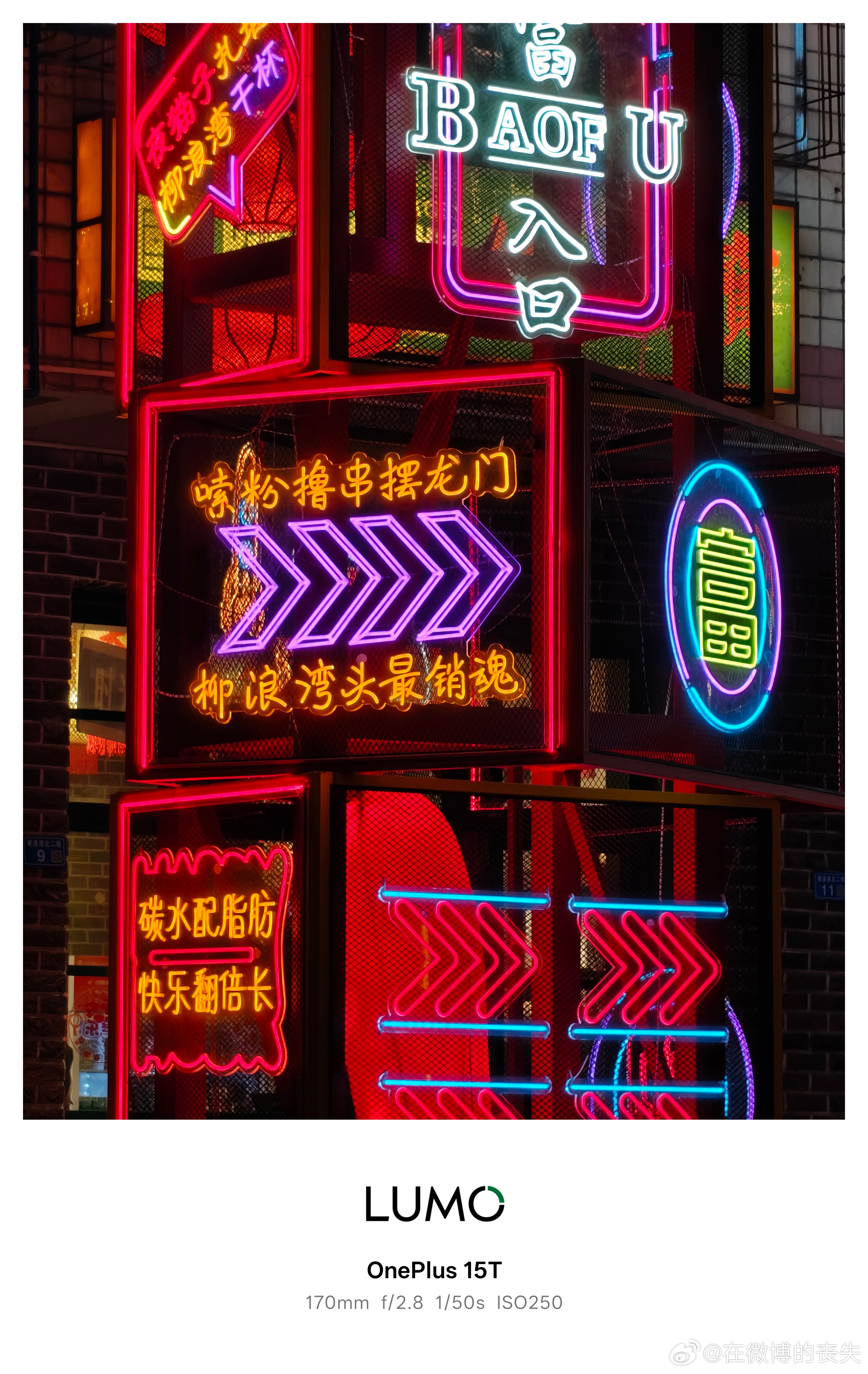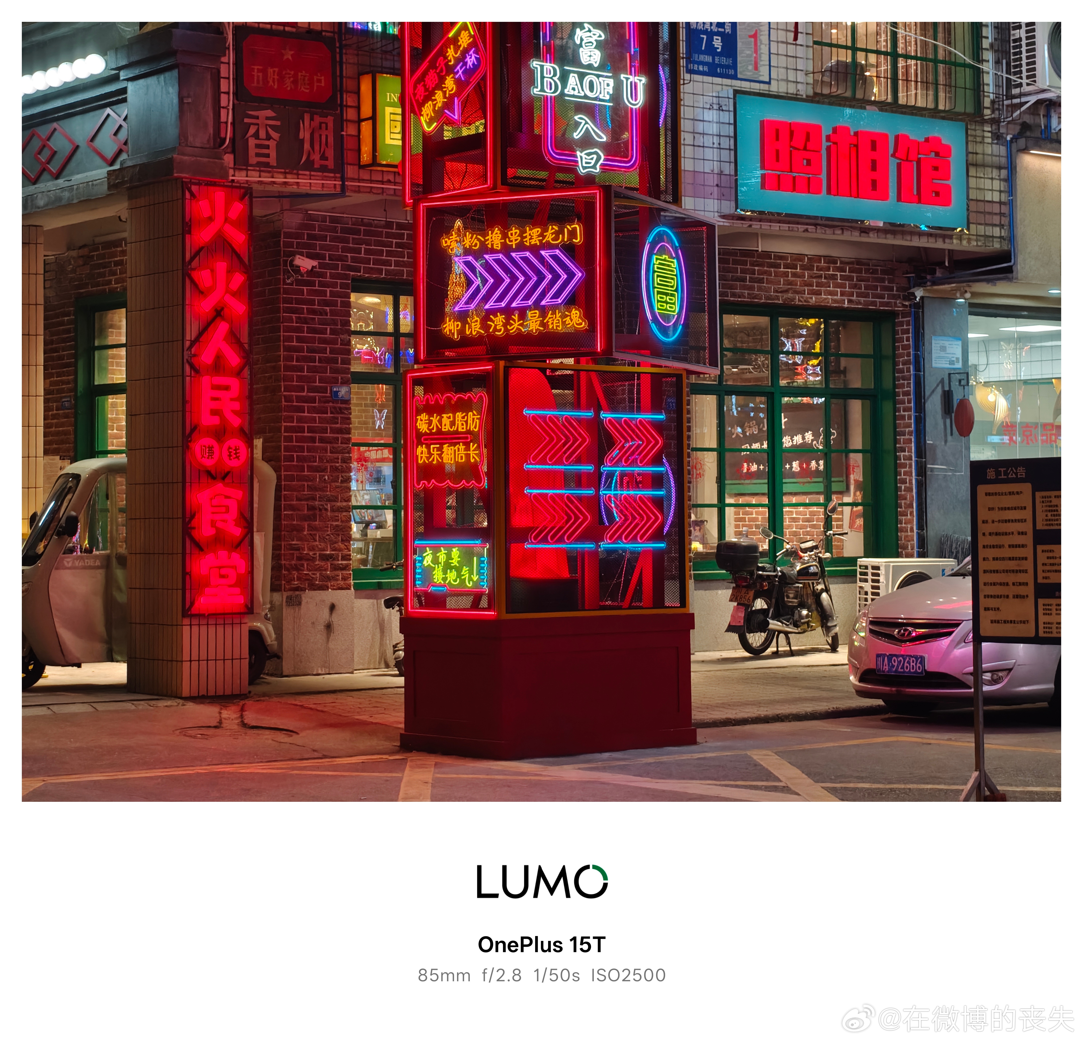 一加15T的长焦在夜拍时也完全没有问题。在晚上霓虹灯打开的情况下,建筑物上的细节依然丰富,没有在光污染下出现严重偏色。夜摊上的美食也是色彩准确的,完全不用担心因为是长焦,所以晚上就画质差的问题。一加15T