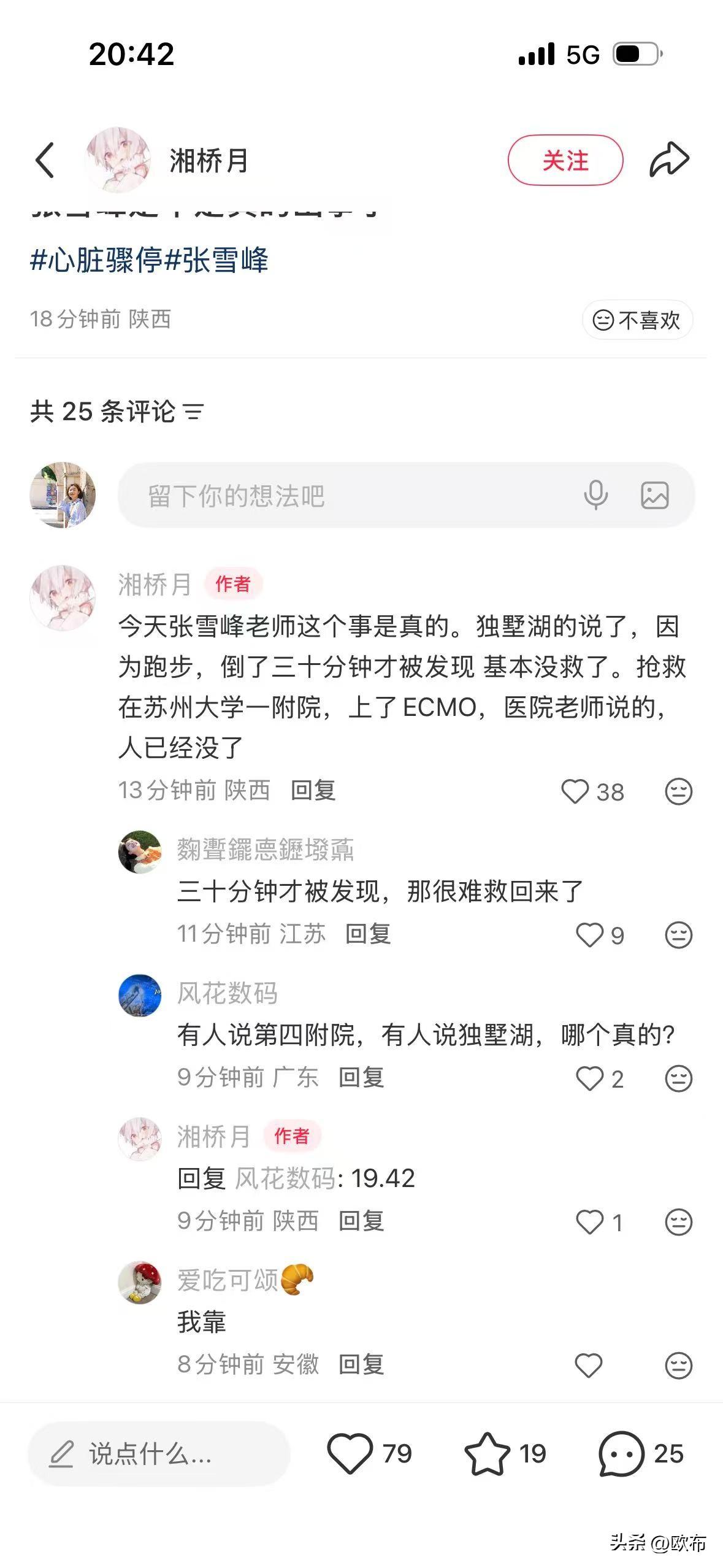 张雪峰心脏骤停离世? 真希望这是假消息。 但有人证实,他在跑步锻炼时突然倒地,当时身边并没有其他人,半个多小时才被发现紧急送往苏州的独墅湖医院,但没抢救过来。 流量时代,为了吸引眼球,经常有这种类似名人猝死的假消息,另一位东北喜剧王也经常被写死。所以,看到这种新闻我第一时间都是先质疑。 我赶紧上网求证,越看越觉得不像假消息。 他才四十一岁,他给多少寒门学子指明了方向,多少普通人家的孩子是因为他,少走甚至没走弯路? 张雪峰,黑龙江人,幽默风趣骂骂咧咧,输出的信息非常有参考性。他凭借着这些特质,得到了大众的认可,在自媒体群体里独树一帜。 刚刚突闻噩耗,心里咯噔一下,在漆黑的夜里祈祷这是个假消息,明天,他能出来辟谣,依然是嘚不嘚嘚不嘚,骂骂咧咧。