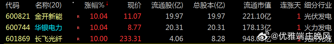600821 金开新能600744 华银电力601869 长飞光纤