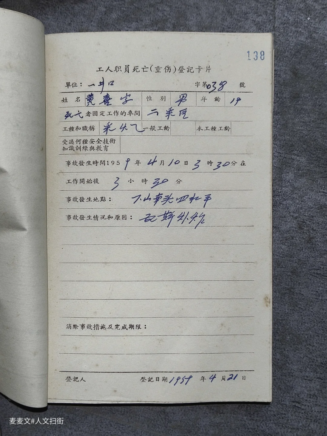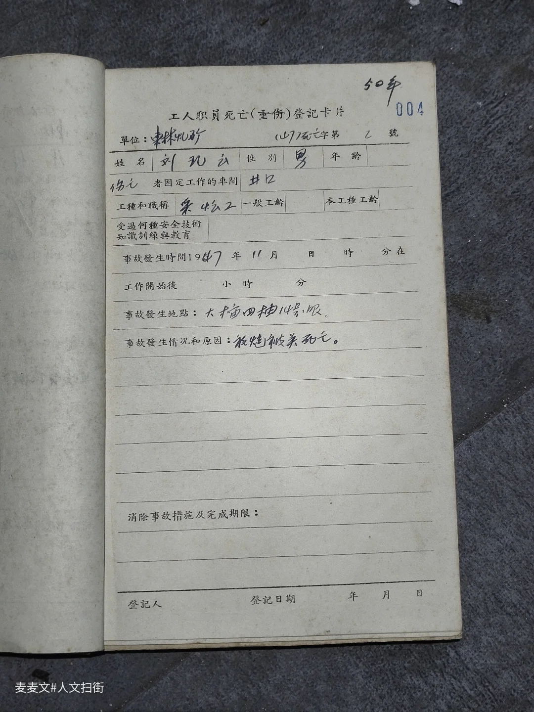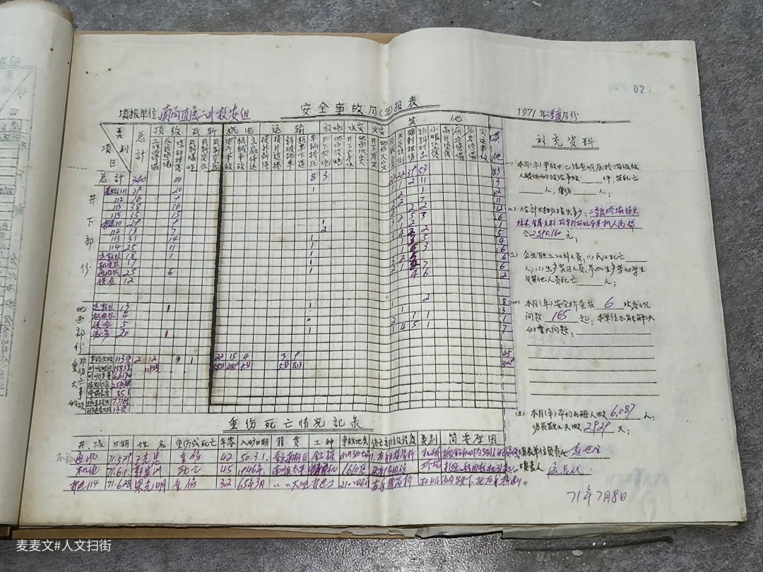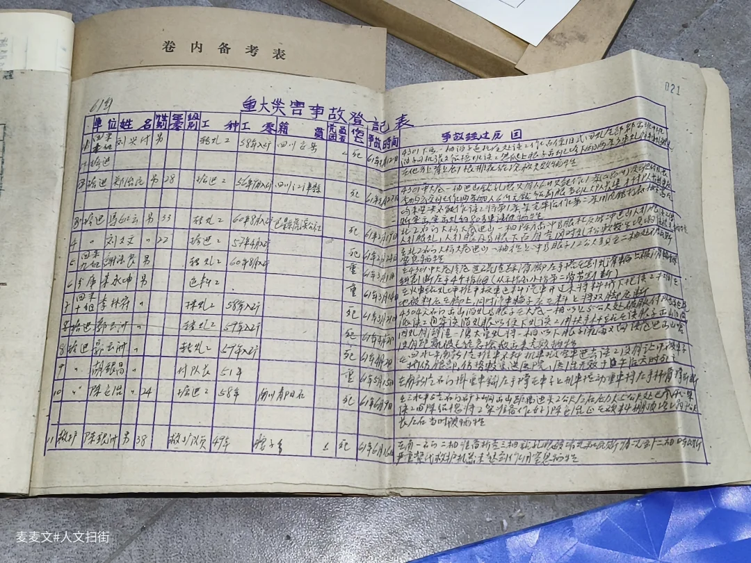 推开东林煤矿档案室的门,一排排钴蓝色的档案盒静静伫立,烫金的“南桐矿务局”字样在岁月里泛着微光。 泛黄的牛皮纸卷宗上,毛笔字迹遒劲有力,记录着1944至1964年的死亡、重伤事故登记表。一行行钢笔字里,是矿工们用生命写下的安全警示。 劳资、党办、安全科的卷宗被仔细编号,“永久”的保管期限,让这些带着煤尘温度的文字,成了重庆工业史最鲜活的注脚。