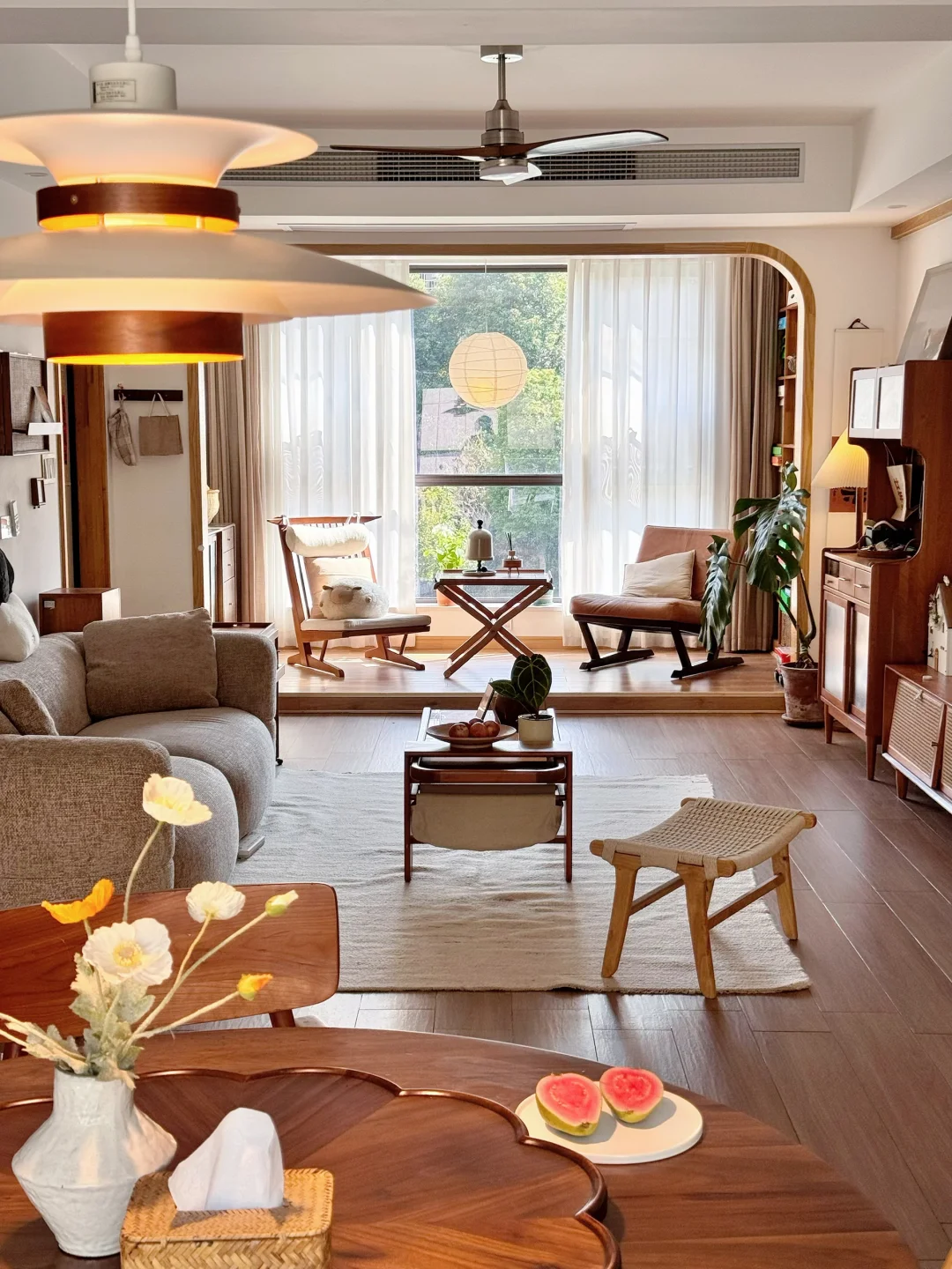 原木色地板+大白墙面,阳光透过纱帘洒进来,连空气都变得软软糯糯🌞 [郁金香R]有坐进去就不想起来松弛感满满得沙发 [樱花R]暖光吊灯把氛围拉满 [玫瑰R]绿植点缀把自然感搬进屋里 [郁金香R]没有复杂的装修,只有简单的舒适感, [樱花R]这大概就是家最理想的样子吧🏡