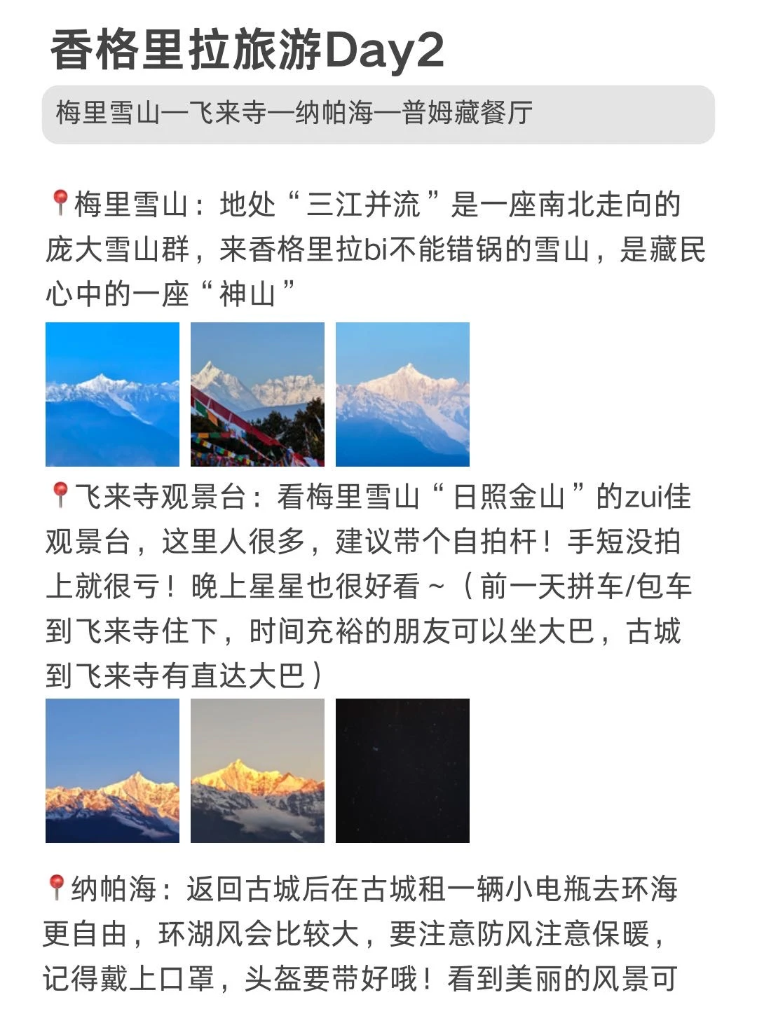 香格里拉轻松玩~日照金色get!美丽湖景get!想要快乐不耗体力玩的姐妹可以参考路线噢🎉三天游玩都不是很紧凑~P人可直接跟着玩✅