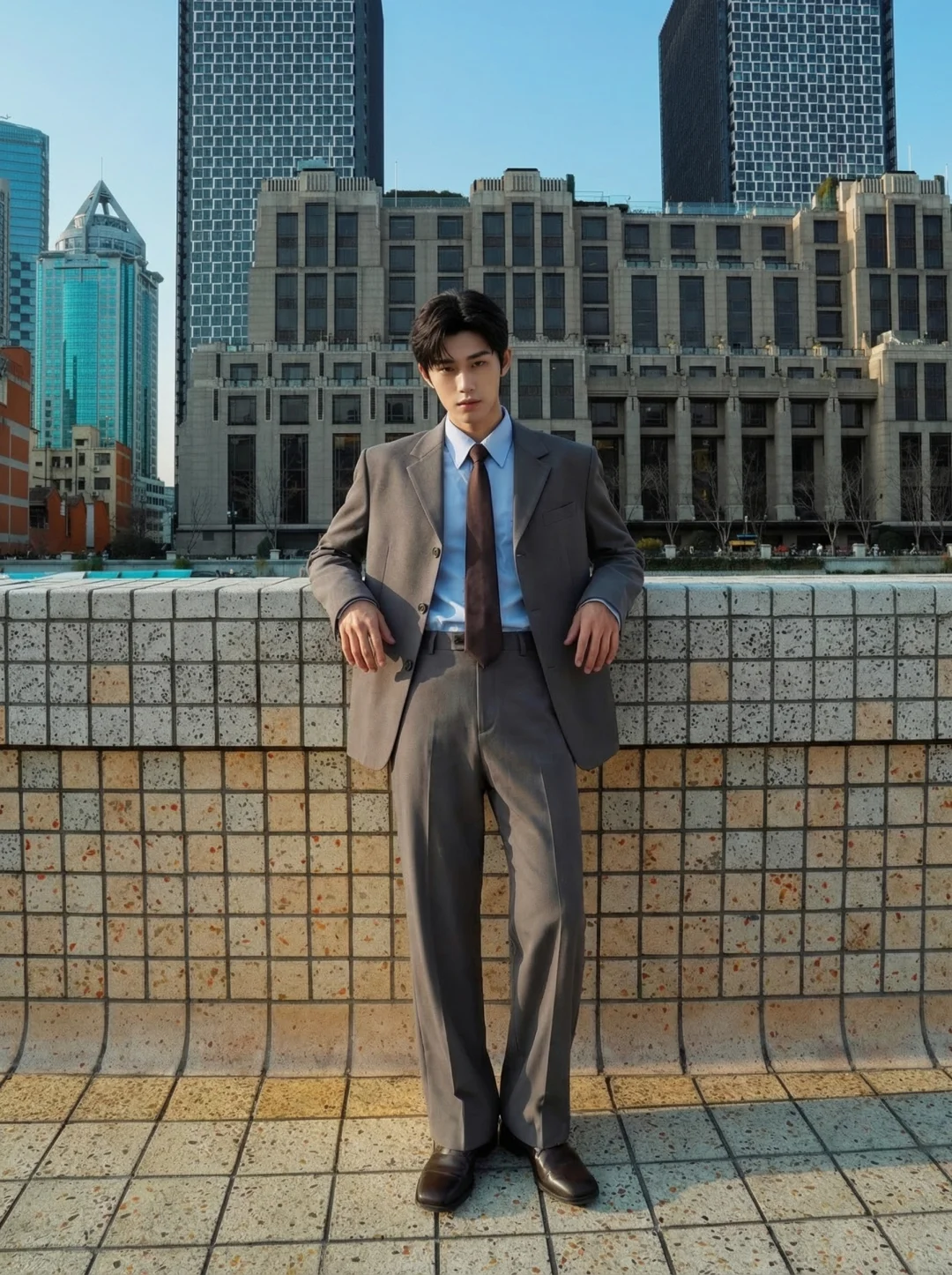 周五下午3点,坐在堆满黑胶唱片的个人工作室里,我换上了这套灰咖色意式西服。 🧥 面料带着微微的混色肌理感,在午后书架的阴影里,透着一种老钱特有的深邃与克制 打领带叠穿了件冷调浅蓝衬衫下半身同色系的西装休闲裤,裤长刚好堆叠在皮鞋面上。 🚶♂️ 这种微微下沉的重心,配合挺括的肩线,不用开口,那种智性雅痞的压制感就已经到位了 戳左下角 get系列西服同款