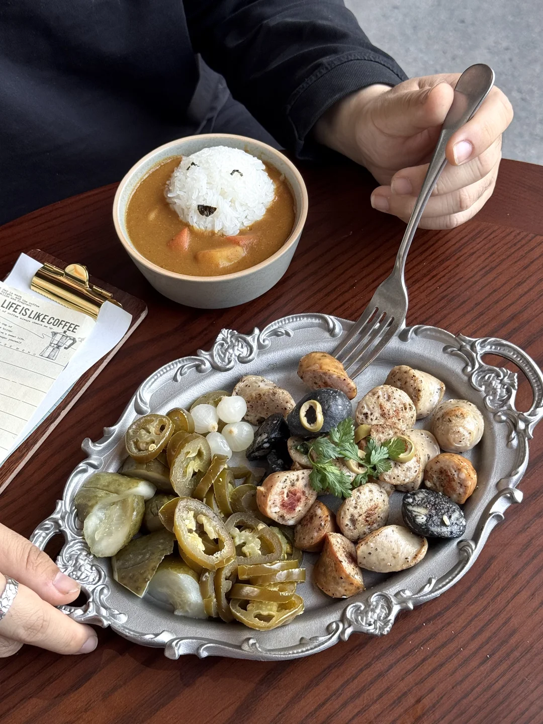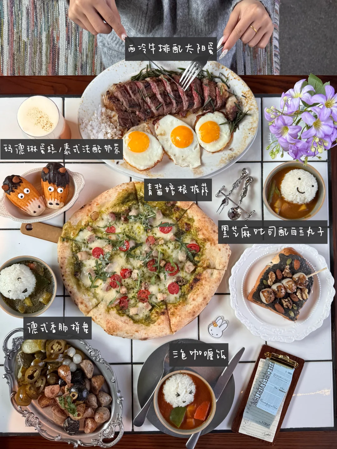 近期打卡过坠满意的一家店!就在杭钢公园里⛲️ 硬核的工业空间 随行的小火车… 超大两层独栋新店,斑驳的钢铁骨架被温柔绿意占据…随便拍拍都好出片!叫:BM矿槽餐厅📍) 青酱培根披萨一口惊艳😭薄底脆边 罗勒松子酱裹上咸香培根适口度数满分!三色咖喱饭 三种口味各有特色好香啊啊!碳水脑袋狂喜~德式香肠、西冷牛排太阳蛋…随便点点都没踩雷! 他家还有brunch、下午茶🫖、晚餐,不管是情侣约会分手还是朋友团建聚餐都很合适!