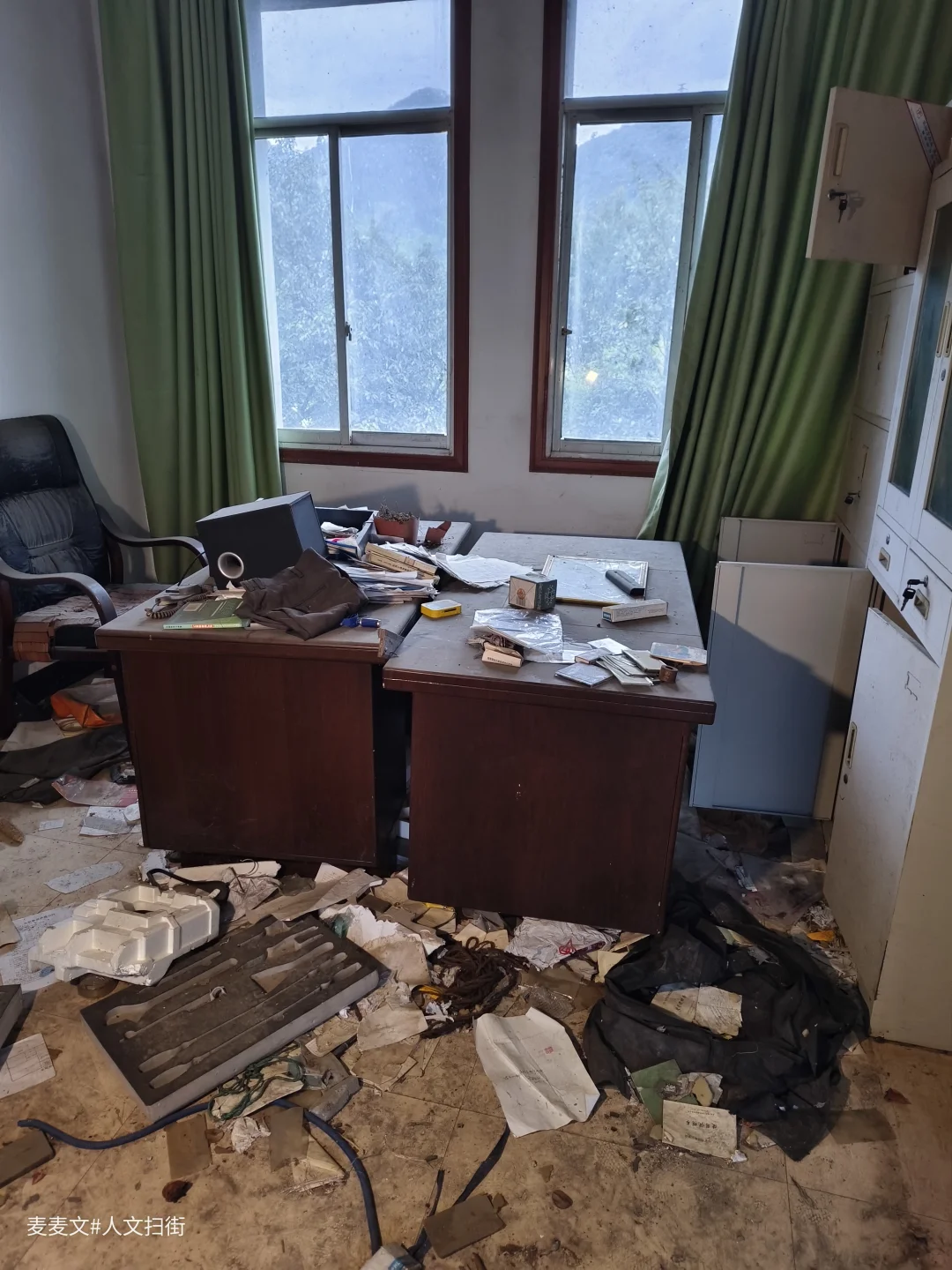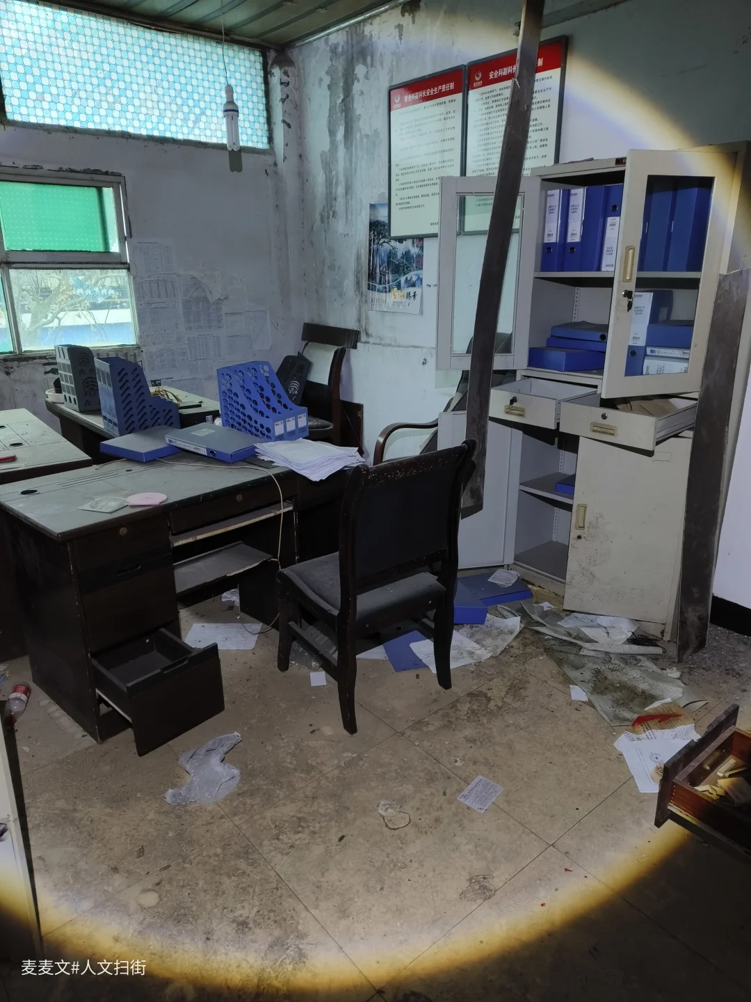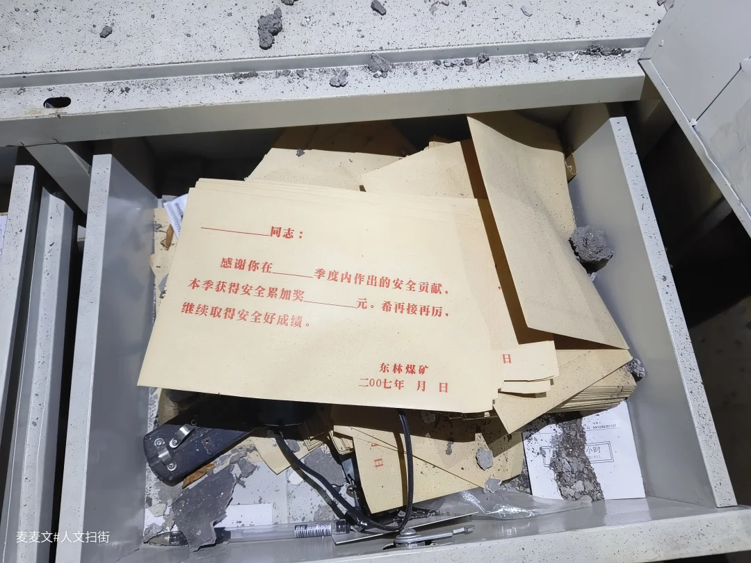2021年,南桐矿务局东林煤矿关停后,厂区渐渐归于沉寂。办公室里文件散落,规章制度、荣誉证书、旧合影被遗落在角落,灰尘覆盖了曾经的热闹。墙上标语依旧醒目,桌椅安静伫立,仿佛还在等待主人归来。 没有了机器轰鸣,没有了往来身影,只剩下空荡荡的房间与泛黄的旧物。那些堆叠的文件、褪色的照片,藏着几代矿工的青春与汗水,也封存了一段属于东林煤矿的辉煌岁月。