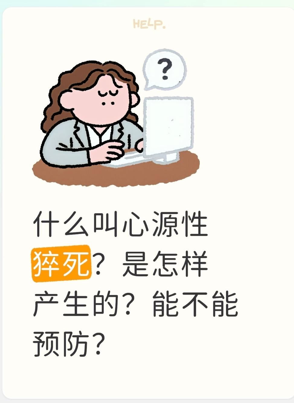 心源性猝死(Sudden Cardiac Death, SCD)是指由于心脏原因导致的自然死亡,通常在症状出现后1小时内发生。它的特点是发病急、进展快、死亡率极高。 以下是关于它的产生原因、机制及预防的详细解答: 一、 是怎样产生的?(病因与机制) 简单来说,是心脏的“电路系统”或“血管”突发故障,导致心脏瞬间停跳。 1. 核心病因:恶性心律失常 绝大多数(>80%)是由室颤(心室快速无序颤动,无法泵血)或室速引起的。这就像心脏抽筋了,血液泵不出去,大脑瞬间缺血,人在几分钟内就会脑死亡。 2. 常见诱因 冠心病(最常见):冠状动脉堵塞或斑块破裂,导致急性心肌梗死。 结构性心脏病:心肌病、心肌炎、心脏瓣膜病、先天性心脏病。 恶性疾病:如主动脉夹层破裂(血管爆了)。 3. 高发人群与场景 中老年人:尤其是有高血压、高血脂、糖尿病史的人。 中青年过劳族:长期熬夜、高强度工作、过度劳累(如加班、健身猝死)。 情绪波动时:极度兴奋、暴怒、大悲大喜后。 冬季/低温环境:寒冷刺激血管收缩,容易诱发事件。 二、 能不能预防?(虽然凶险,但并非不可防) 预防是关键,且分等级。 1. 一级预防(针对高危人群) 控基础病:严格控制血压、血糖、血脂,戒烟限酒。 避免过劳:保证充足睡眠,拒绝长期透支。 定期体检:心电图(ECG)是基础,高危人群建议做动态心电图或心脏超声。 2. 二级预防(针对已患病人群) 规范治疗:冠心病患者需规范服药,支架或搭桥术后要严格遵医嘱。 植入ICD:对于有极高猝死风险的患者(如曾发生过室颤),植入植入式心律转复除颤器(ICD)是“保命神器”,能自动电击除颤救心。 3. 应急抢救(黄金4分钟) 一旦发现人倒地、无意识、无呼吸,立刻心肺复苏(CPR)并呼叫120。 有条件的地方,第一时间使用AED(自动体外除颤器),这是逆转猝死的唯一希望。 💡 总结建议 心源性猝死看似突然,实则多为日积月累的结果。 如果你身体健康:规律作息,避免极端情绪和过度运动,每年体检。 如果你或家人有基础病:不要忽视胸闷、胸痛、心慌等前兆,生活规律是最好的良药。 心肌猝死 青年猝死