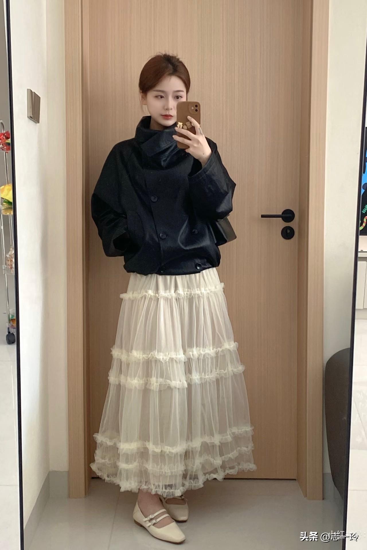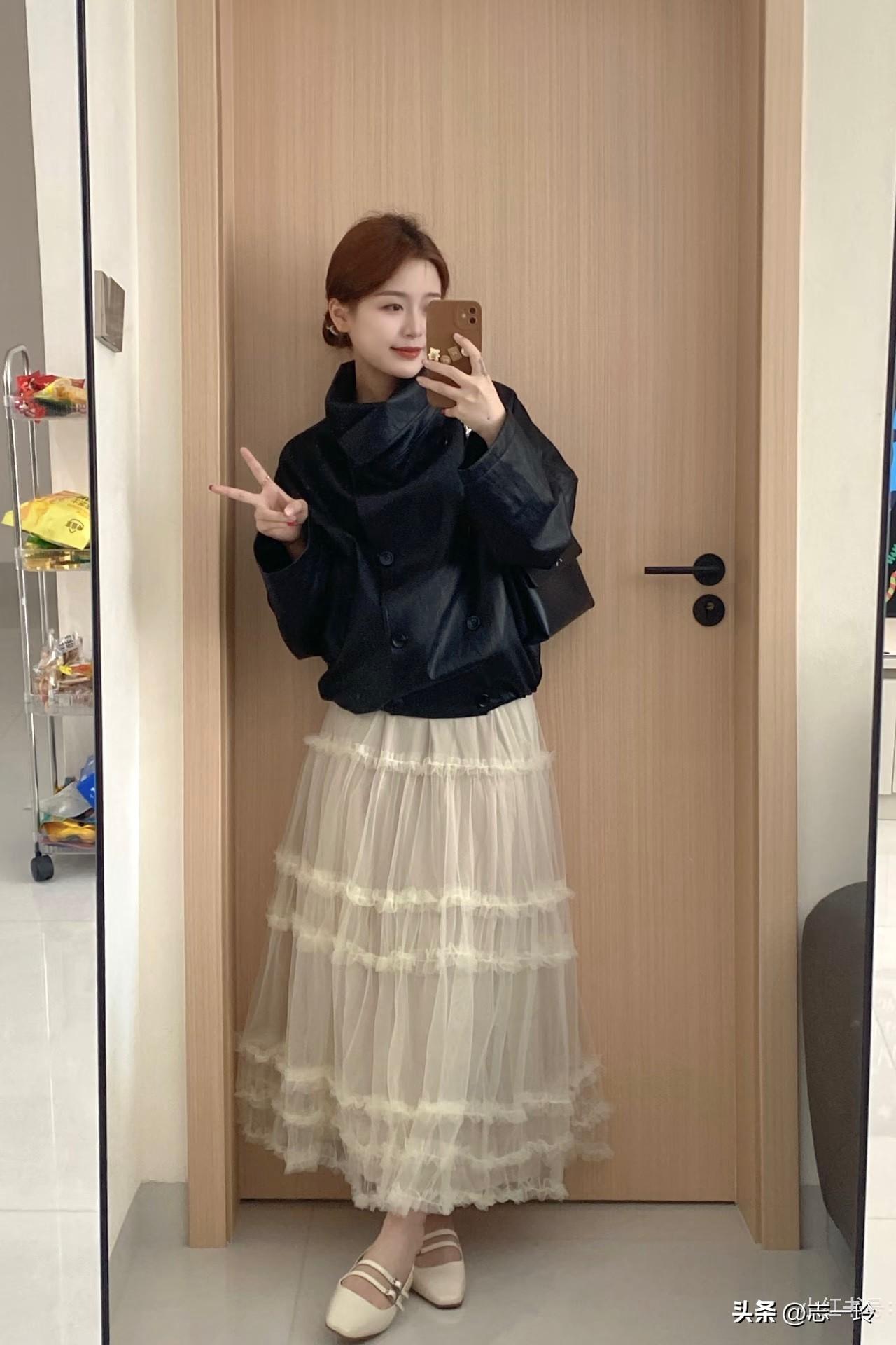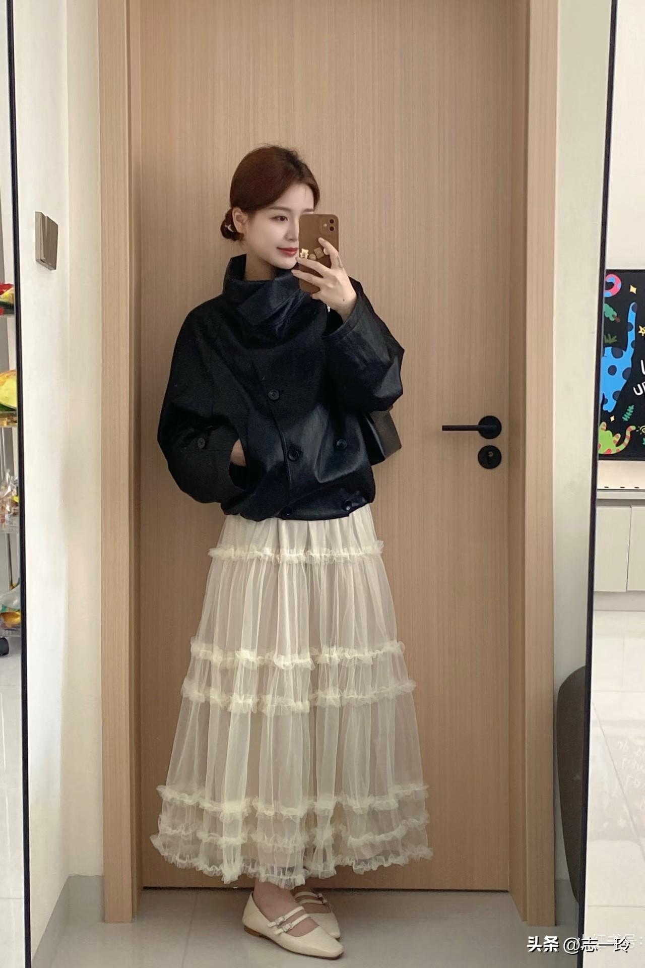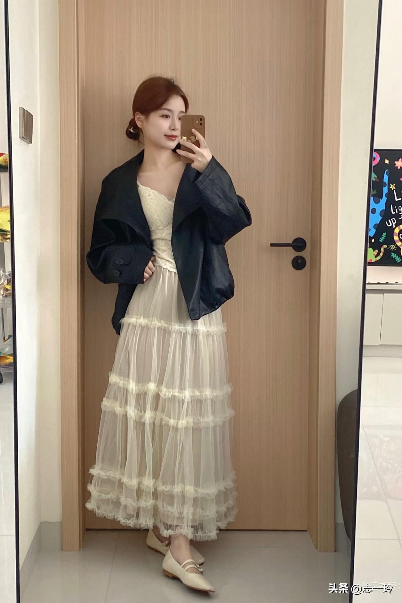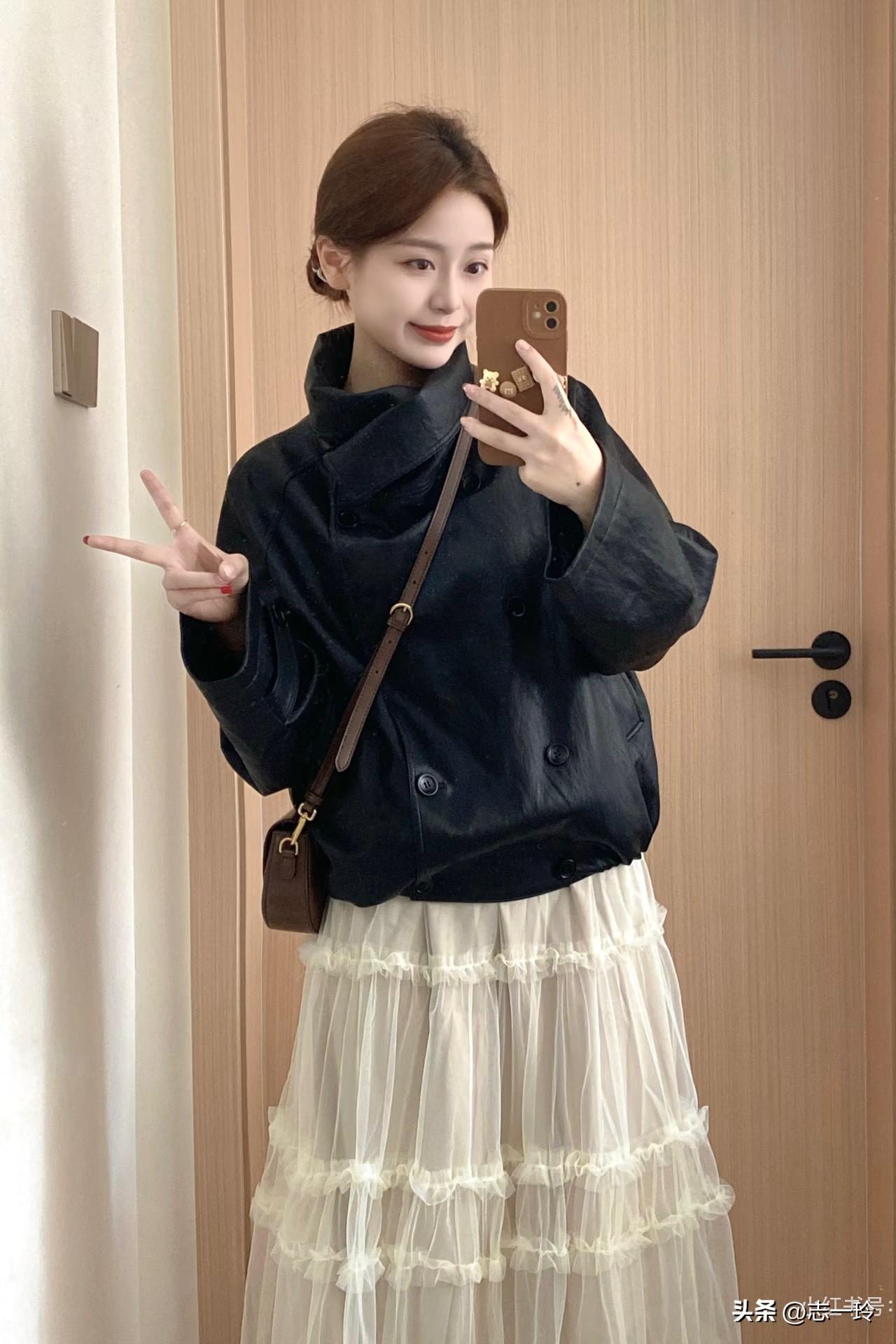 甜美穿搭指南:黑色外套+白色蕾丝裙,轻松拍出时尚大片!📸💖