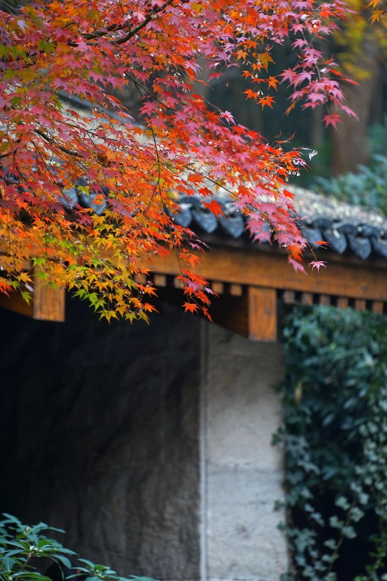 瞻园的红枫大概把秋天所有的浓烈都攒在了这里,透过花窗看见的是半框流丹,转过回廊撞见的是满树赤霞。红枫和黛瓦、碧水、白墙层层叠叠,连石缝里都透着金陵城独有的诗意。