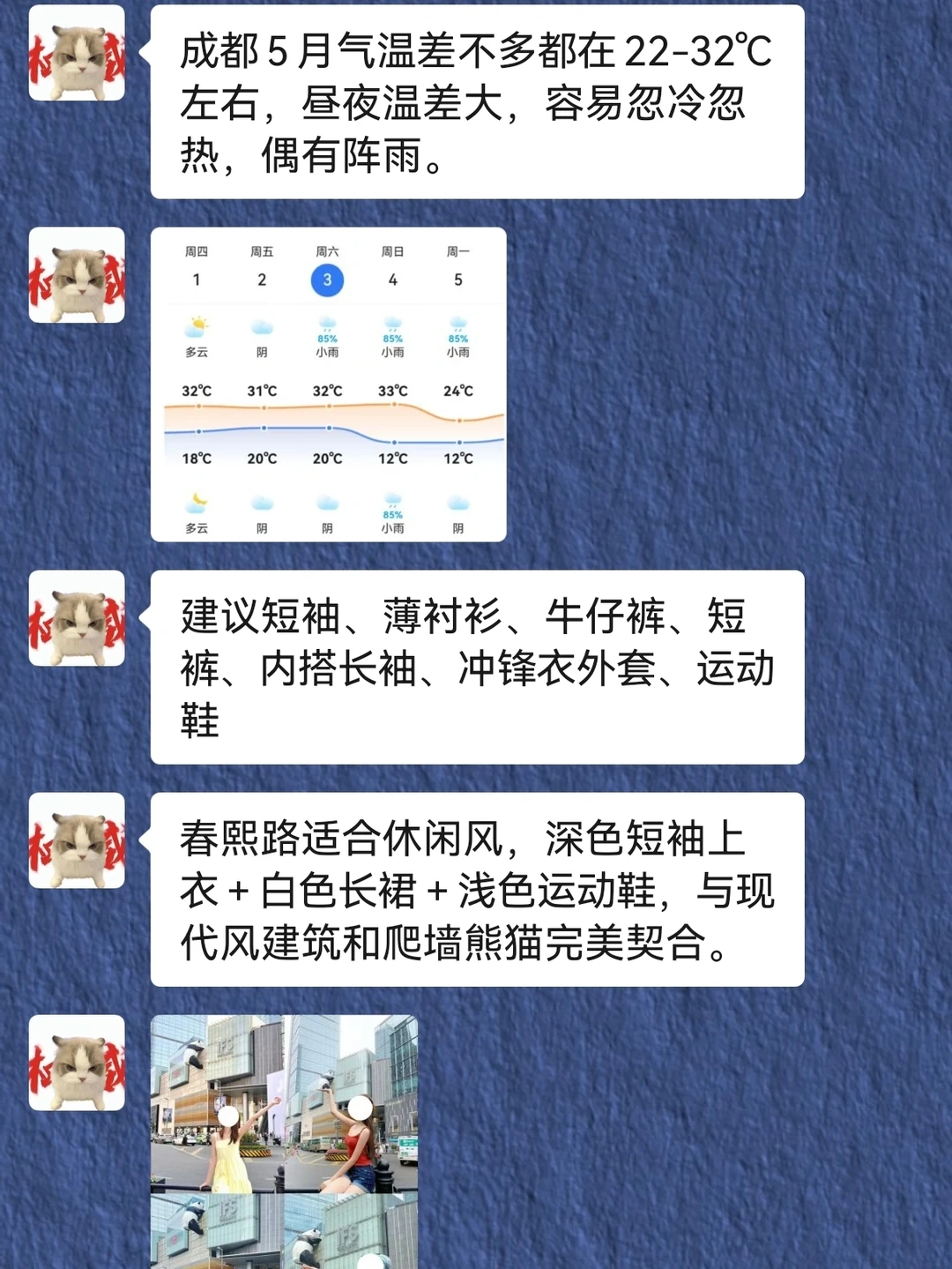 ☁成都5月天气22℃-30℃,略微有点热,出门记得做好防晒~