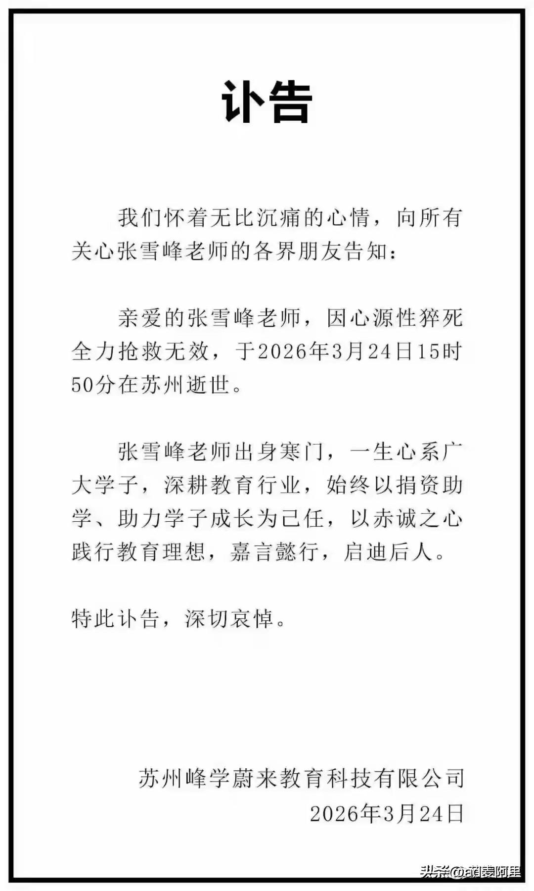 张雪峰老师去世…