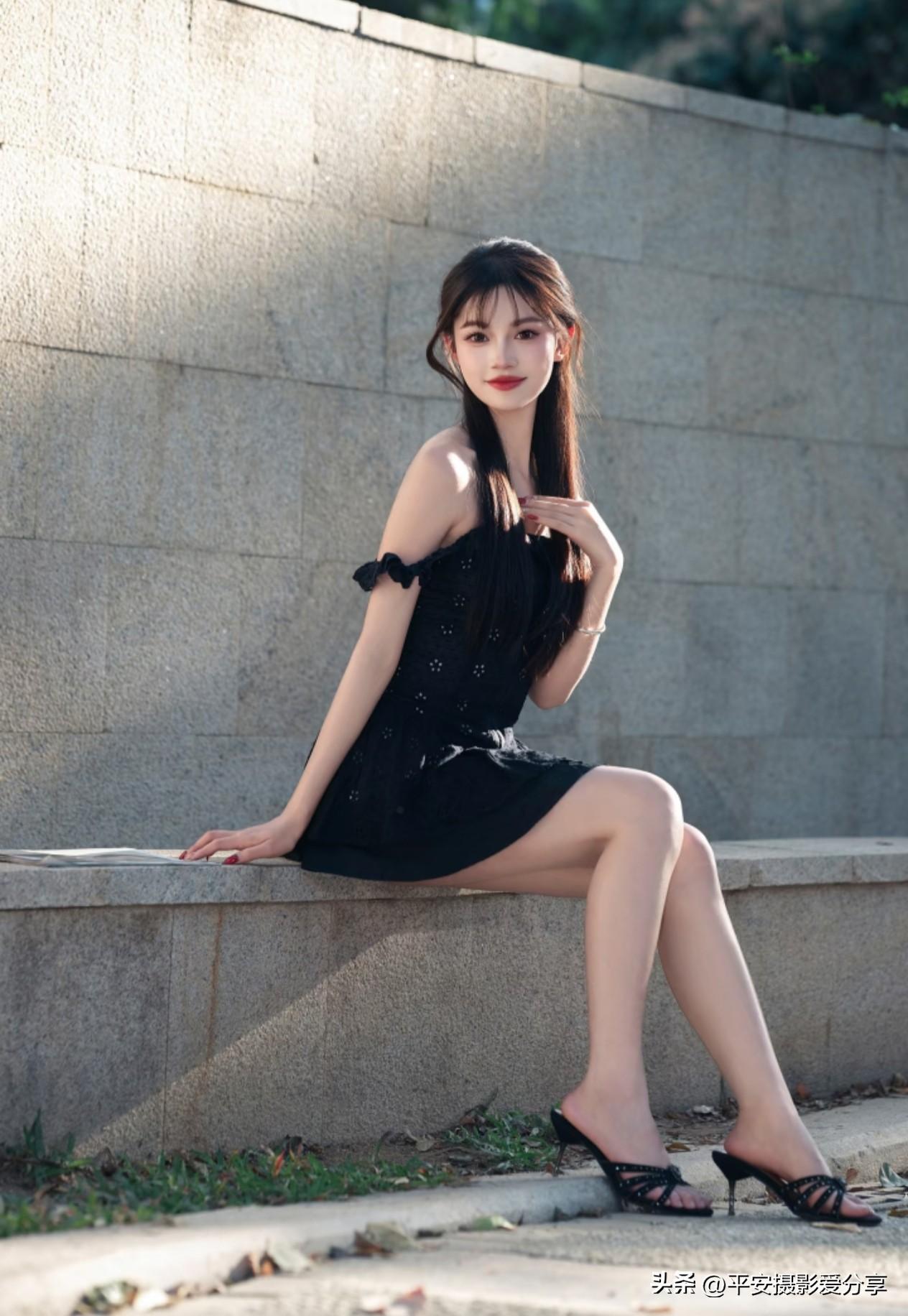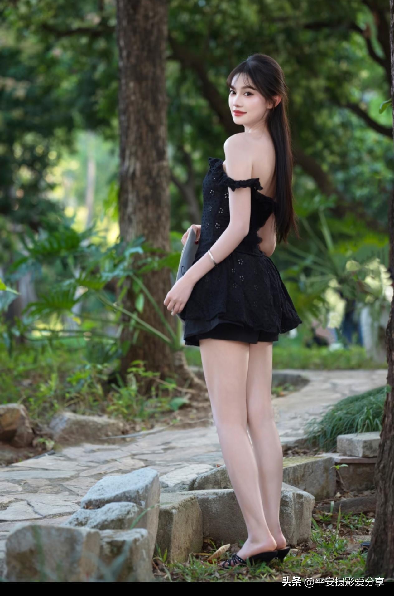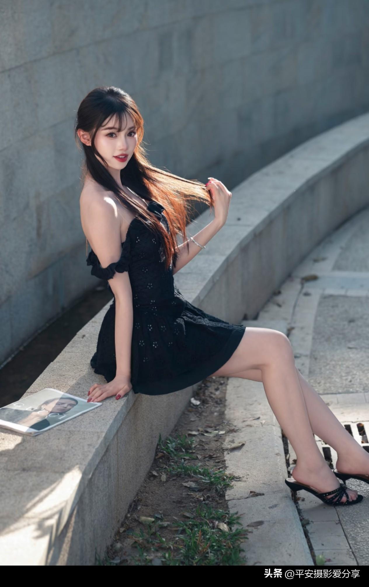 阳光明媚的一天,纯黑色抹胸裙穿搭技巧分享!无不良引导啊!明媚大气穿搭 性感黑裙穿