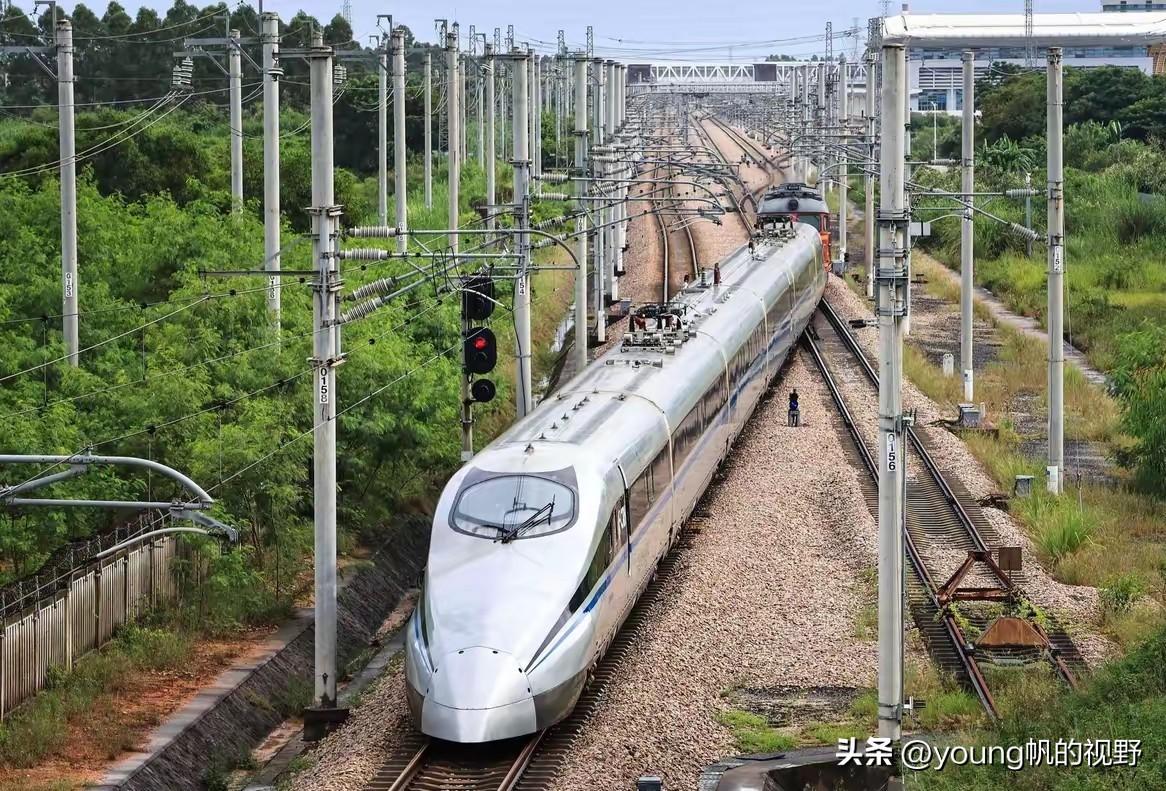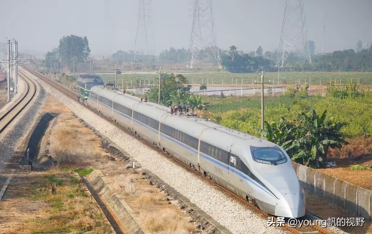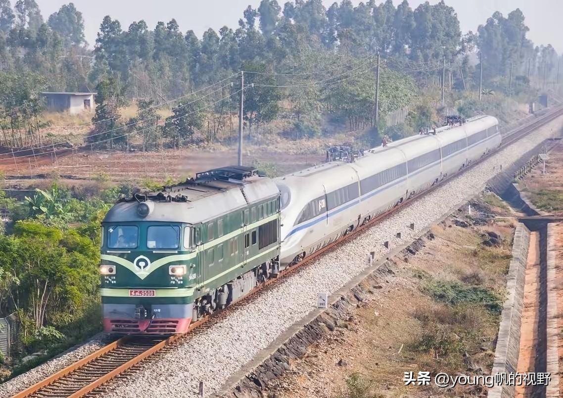 这是全国唯一的一列高铁综合检测列车CRH380AM动车组,因为其有着特别尖长的车头,因此也被众多火车迷亲切的称之为青铜剑列车。作为试验列车,他曾经跑出过600km/h的最高试验速度,同时他也作为安全检测列车,常年奔跑在全国各地的高铁线路上。虽然他也是中国铁路最高技术的代表,但离开了电力,还是得趴窝。所以在一些非电气化铁路上,你能看到这列高铁动车组还得被老旧的西瓜和橘子机车拉着跑。
