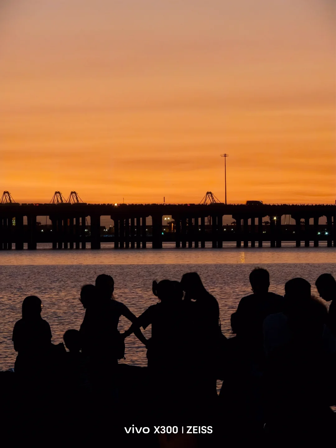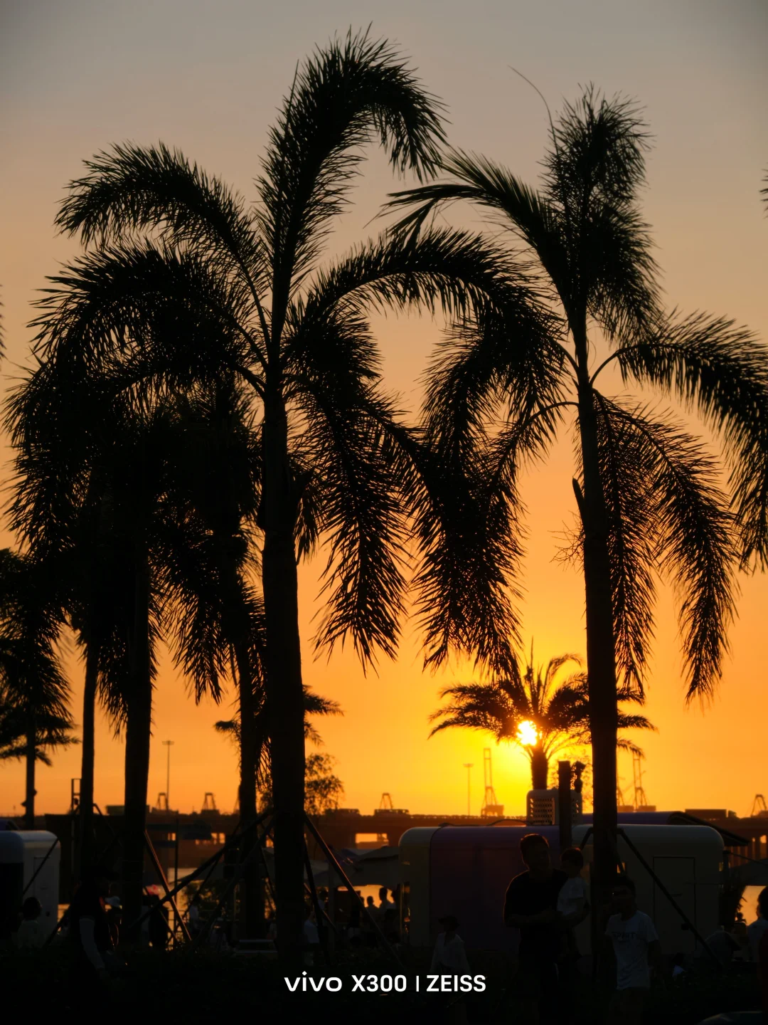 当我站在夕阳的江边,邂逅这场落日盛宴,每一帧都是时光的诗行。 金黄的落日鎏金拉长在湖面,vivo X300的蔡司镜头像个 “日落捕手”,大桥的结构线条,水面细碎波纹、人群剪影轮廓,在黄昏明暗交错里都看得清。即使是在逆光的环境下,云朵下的棕榈叶纹理依旧清晰。自然光影和人间烟火融在一起,通过镜头实实在在存进了相册,每次点开,都跟又站在江边看落日似的,连风都是暖的。 这抹蓝有故事要讲 人间蓝调VOTD日落后二十分钟 vivo VOTDvivo X300