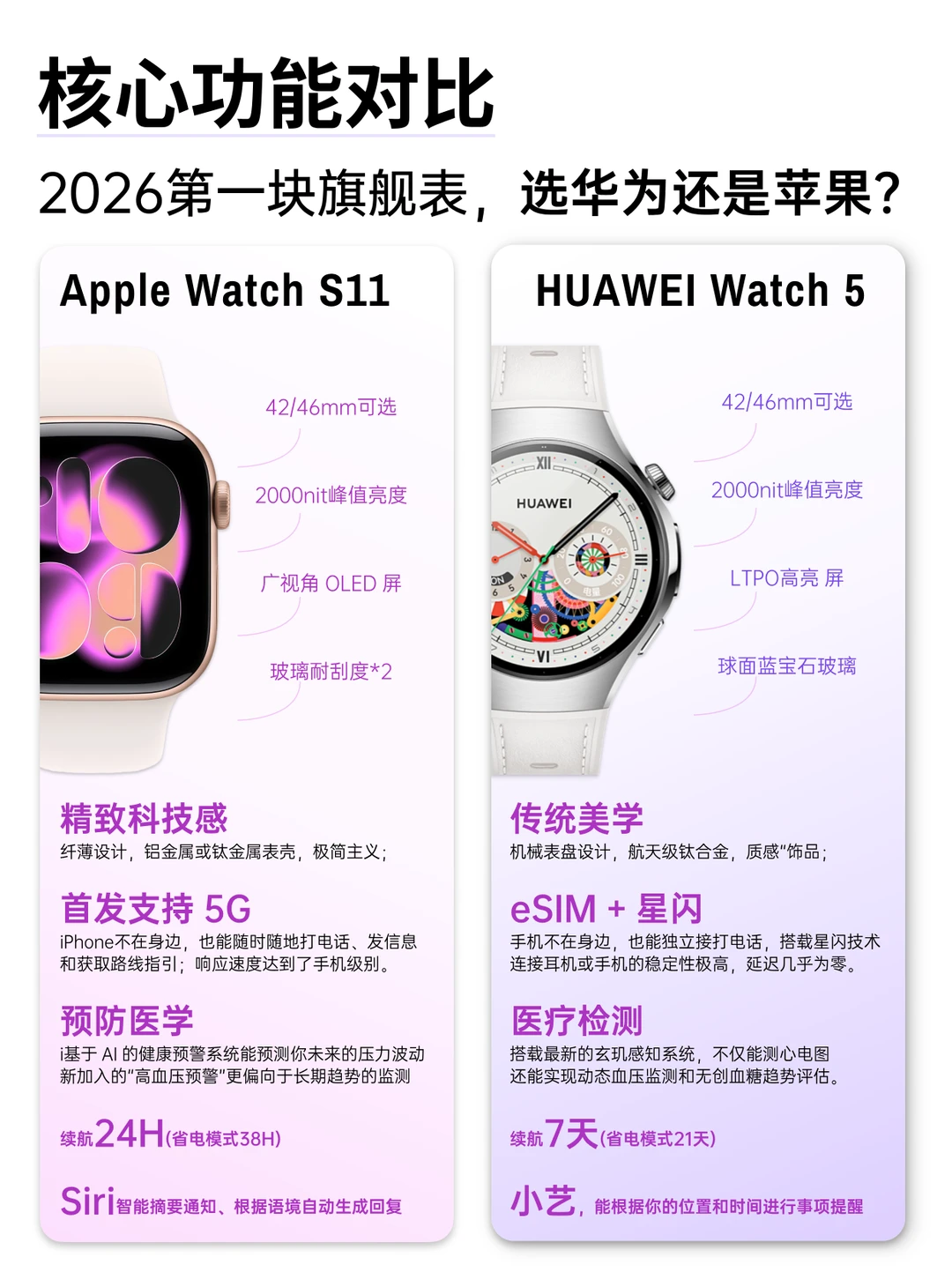 那么2026 年最热门的两款旗舰:Apple Watch S11 和 华为 Watch 5应该怎么选?