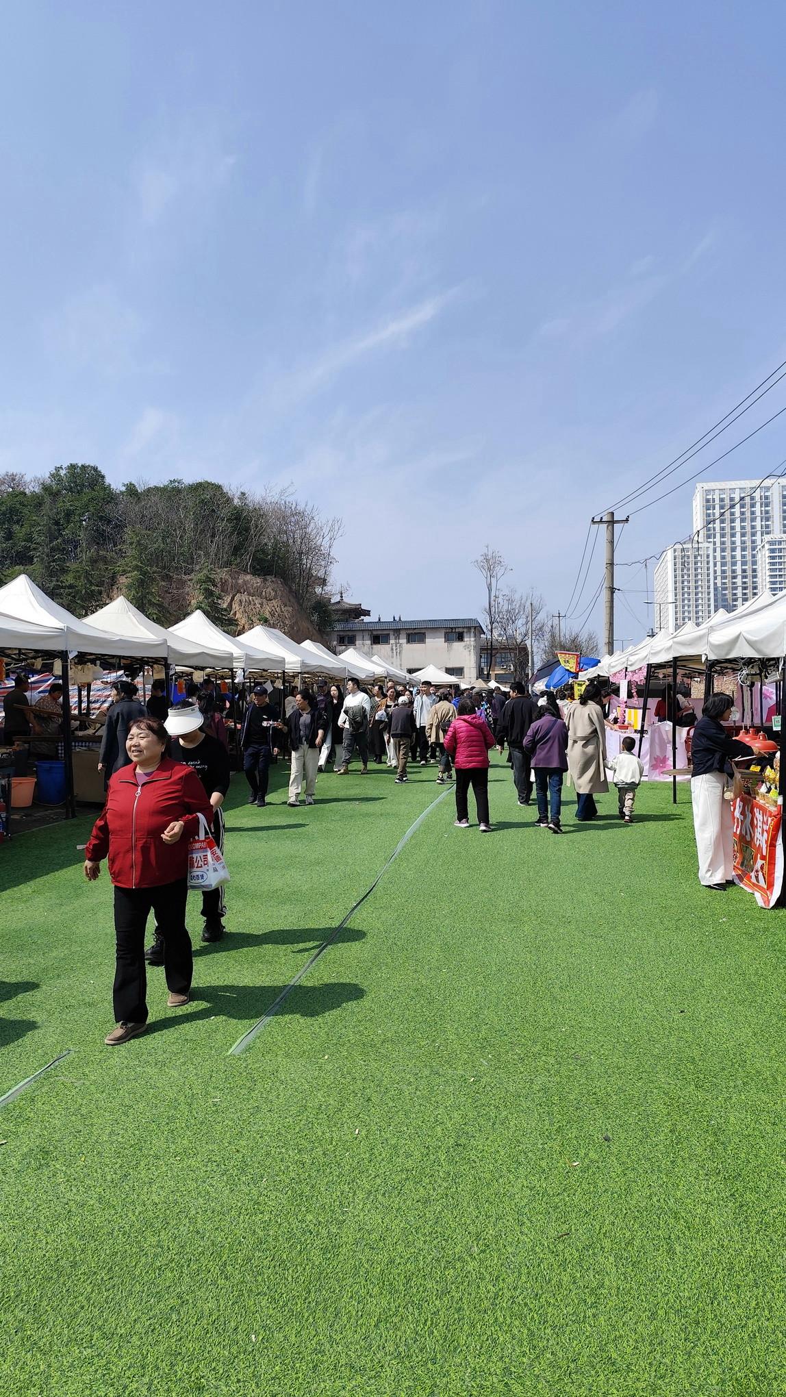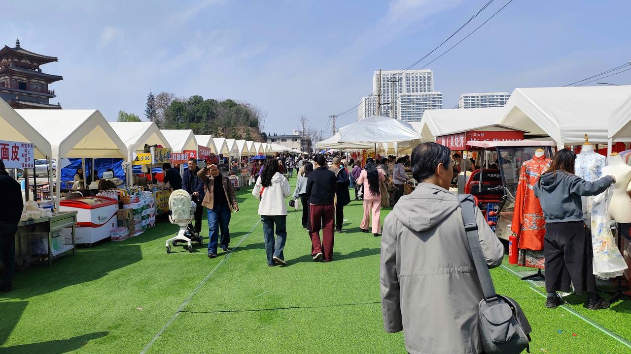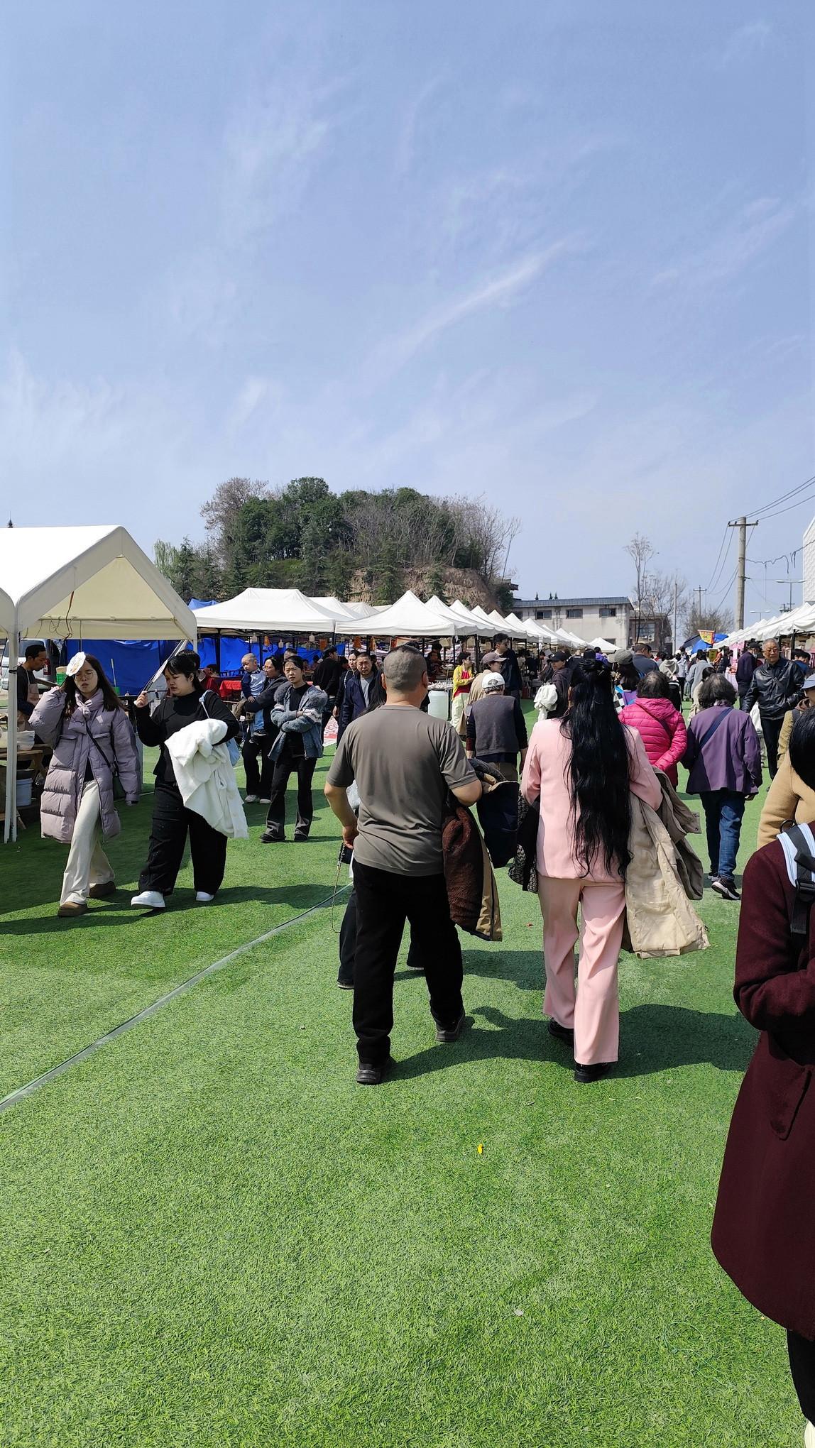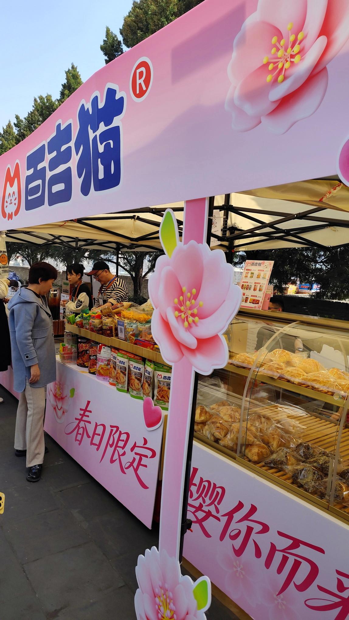 刚到青龙寺外,就迎面撞上浓浓的热闹劲儿——马路对面一座粉色的樱花主题大门格外扎眼,穿过门洞,好家伙,直接穿越进“樱花庙会”了🌸道路两旁一溜排开的小吃摊位,香气扑鼻,烤串、糖画、凉皮、樱花限定甜品……应有尽有,人头攒动,热闹程度堪比过年赶大集。走过这条烟火气十足的美食街,才算真正到了青龙寺门口。 进寺之后本以为能清净些,没想到园内也别有洞天——更精致的品牌美食车错落分布,东亚饭店、陕拾叁、银桥牛奶、百吉猫这些本土老字号纷纷支起樱花主题展位,冰酪、樱花奶制品、限定点心……逛累了随时能坐下来歇脚补给。虽然商业氛围浓厚,但都围着樱花做文章,倒也不觉得违和,反而多了一层“逛吃结合”的乐趣。 原本想象中的赏樱是安安静静、落英缤纷的画风,结果咱这儿的樱花季,硬是走出了“热闹才是硬道理”的中国特色🎉想感受人山人海、边吃边逛、被春色和烟火气同时包围的,千万别错过这一场~九张现场图奉上,带你沉浸式体验青龙寺的热闹樱花季。